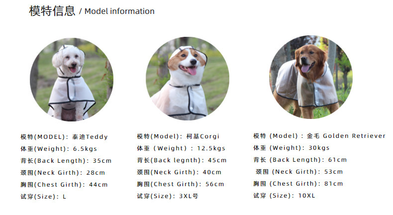 PET TPU transparente PET capa impermeable perro grande peluche cubo francés Corgi Shiba inu cachorro ropa lote