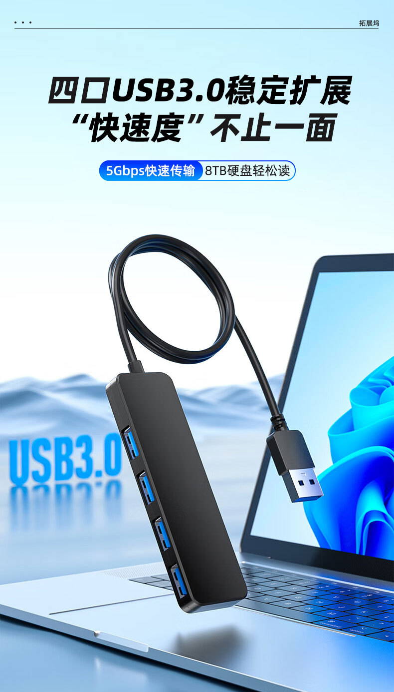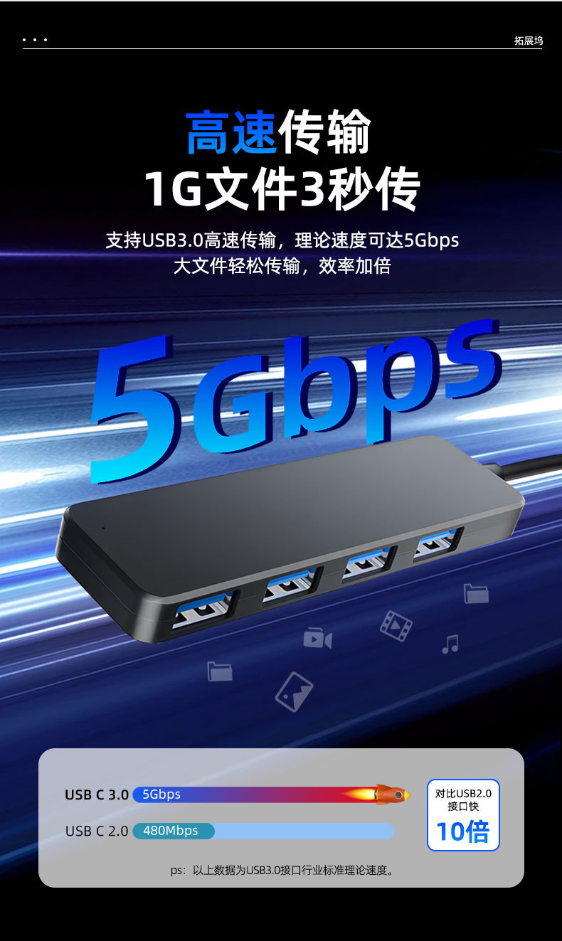 Hub USB 3.0 4 puertos divisor 1 a 4 expansor 5Gbps exportación
