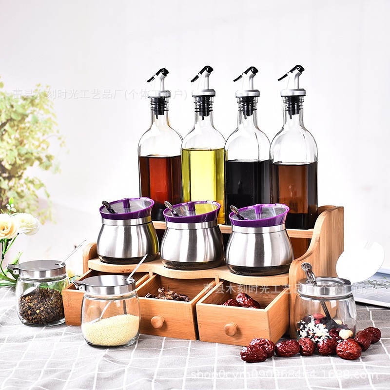 Red cocina bambú y madera rack de condimento conjunto de condimento rack de bambú y madera rack de madera