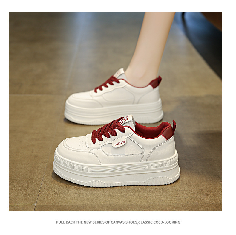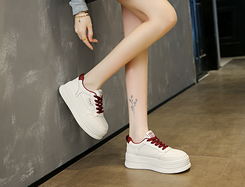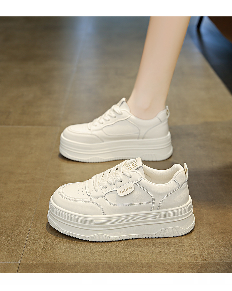 Muffin con suela gruesa zapatos blancos para mujeres 2025 nueva moda versátil cómodo ligero redondo correa zapatos de skate casuales