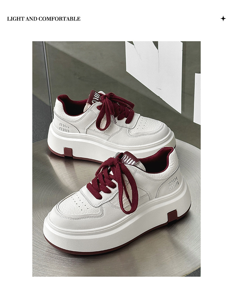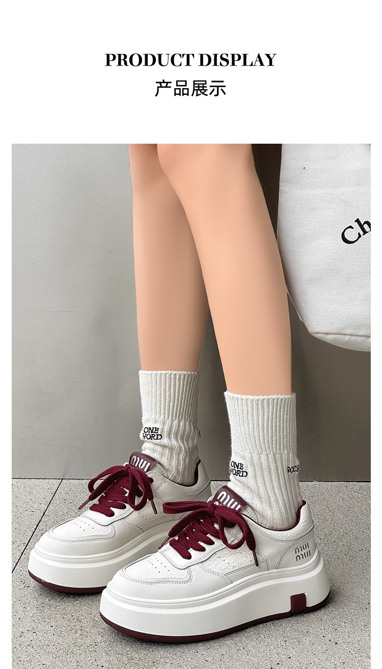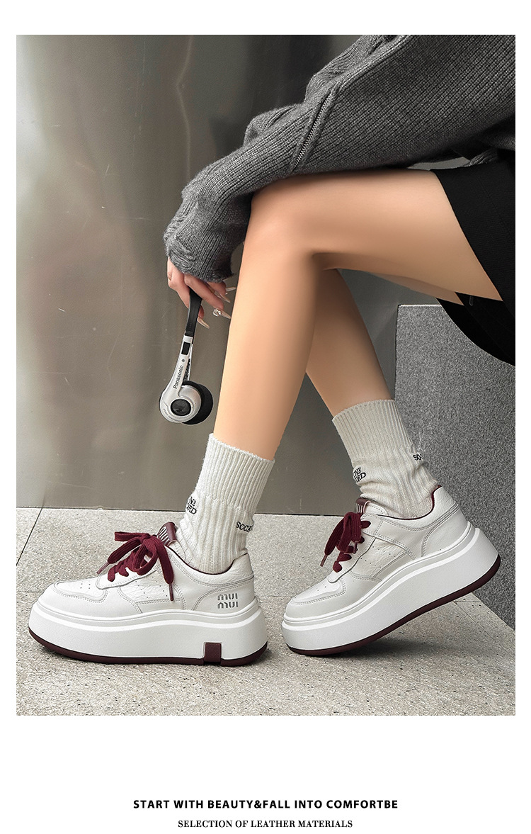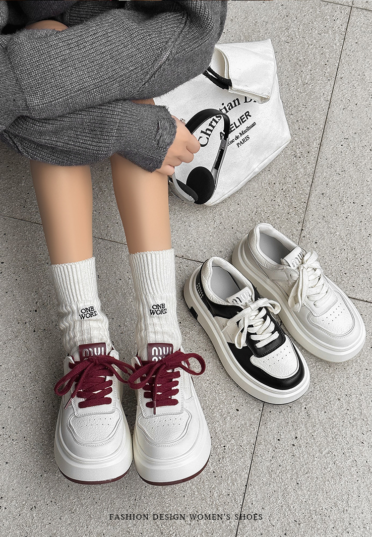 Pequeños zapatos blancos para mujeres en línea rojo explosión de otoño y invierno 2025 aumento de suela gruesa de cuero real y terciopelo pequeño in-mode zapatos de skate casuales