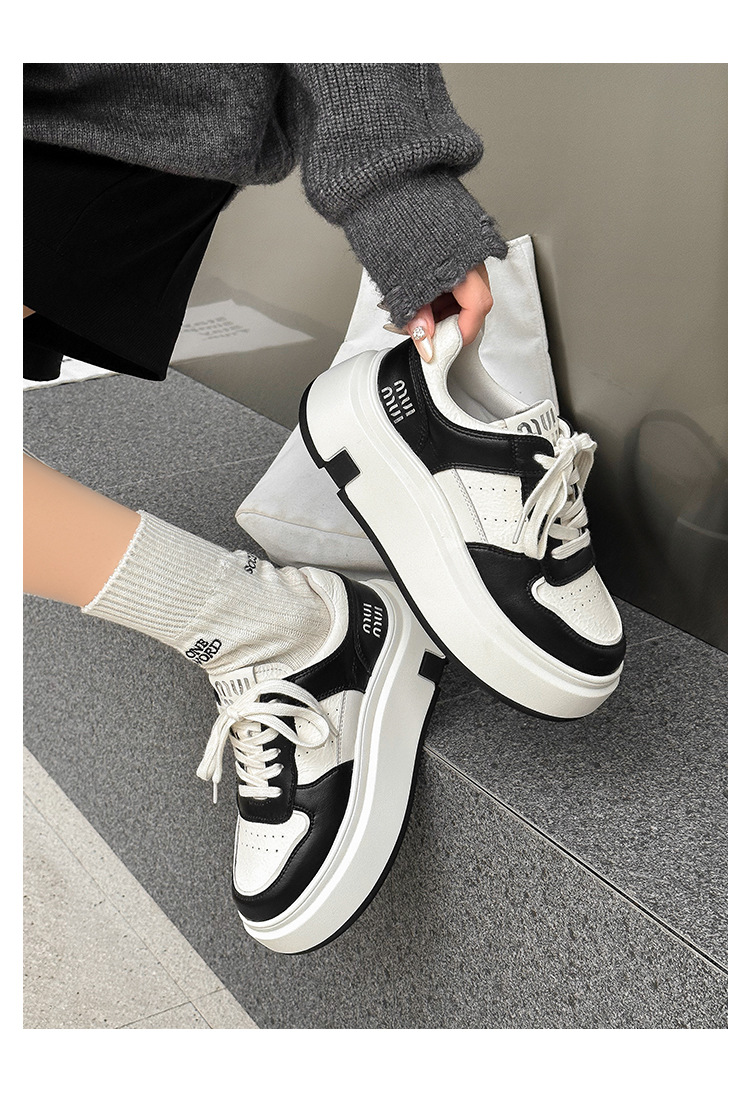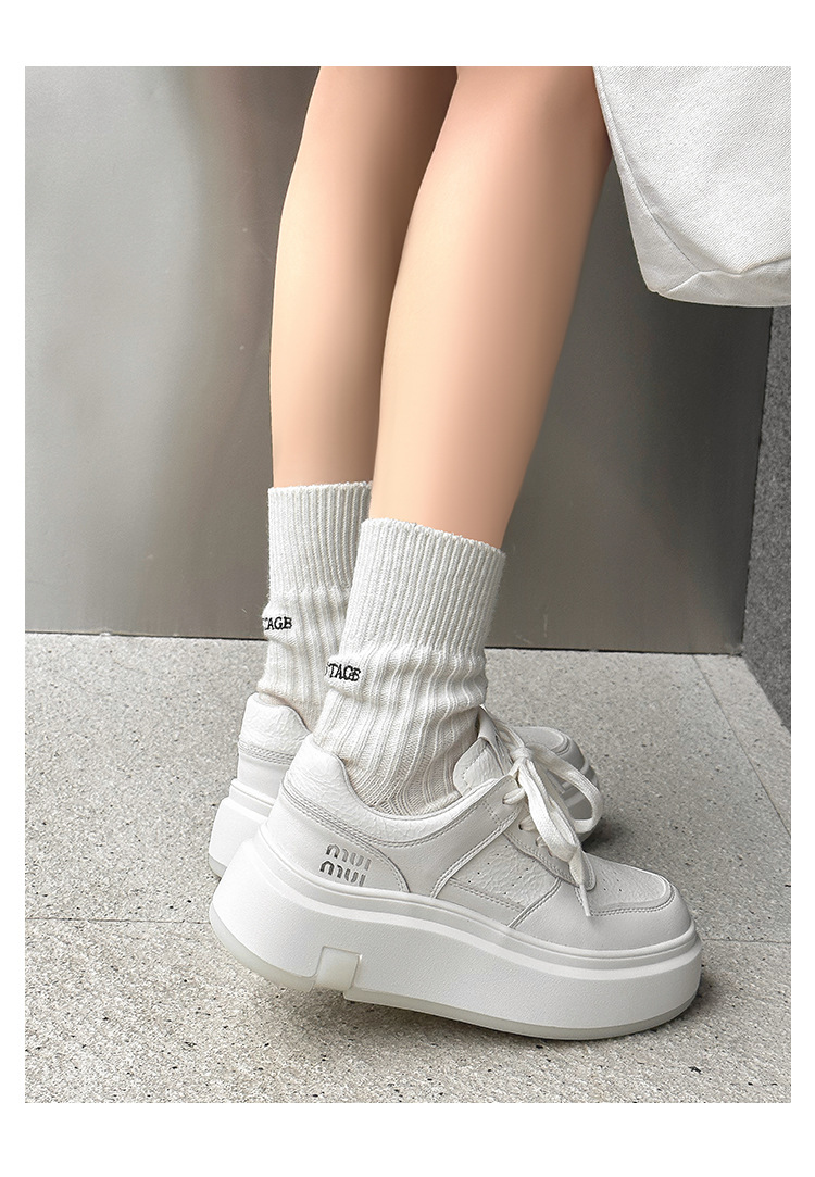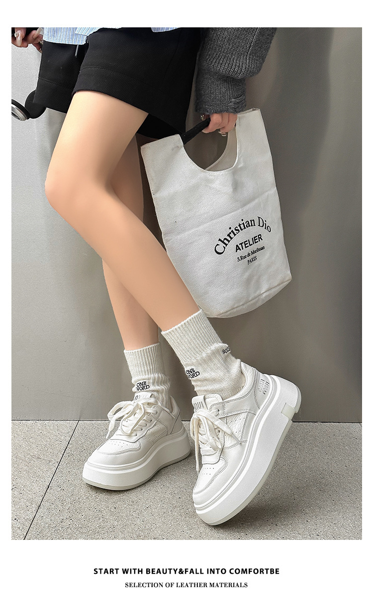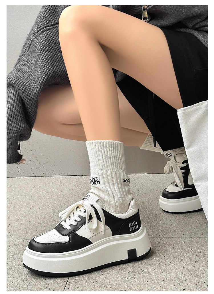 Pequeños zapatos blancos para mujeres en línea rojo explosión de otoño y invierno 2025 aumento de suela gruesa de cuero real y terciopelo pequeño in-mode zapatos de skate casuales