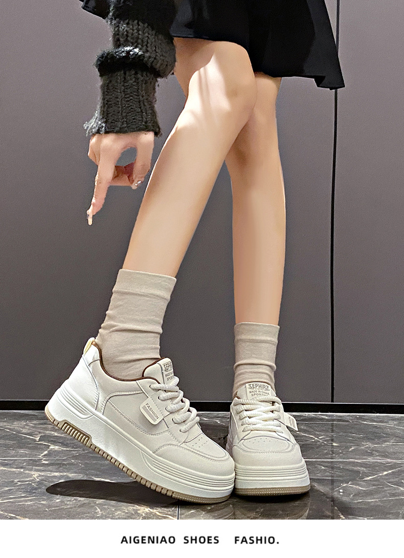 Zapatos blancos para mujer 2025 primavera nuevo estilo coreano versátiles zapatillas de suela gruesa que aumentan la altura zapatos casuales zapatos deportivos para mujer.