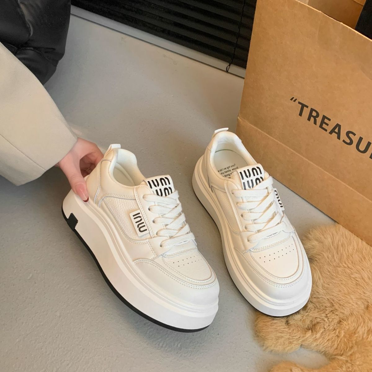 2025 zapatos blancos de primavera nuevos zapatos coreanos para estudiantes de suela gruesa de moda zapatos deportivos casuales para mujeres