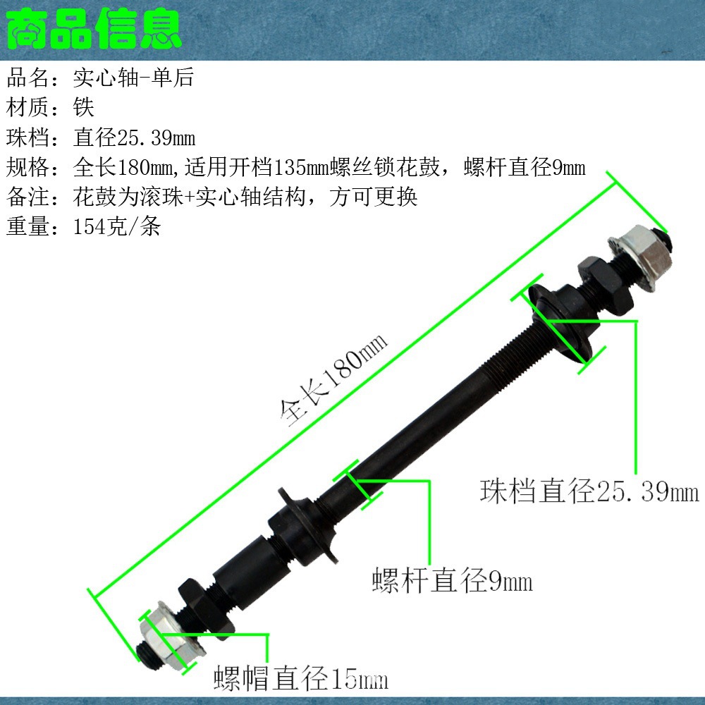 Eje sólido eje trasero de bola de tambor de flor eje central eje central tornillo con engranaje de bola para bicicleta de montaña