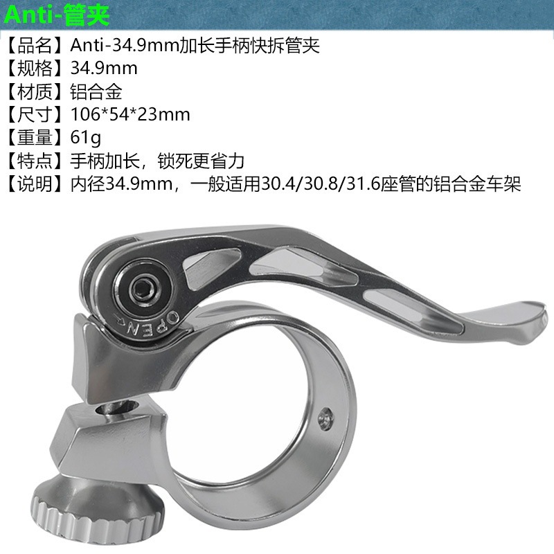 Clip de asiento de desmontaje rápido de mango alargado / clip de asiento de tubo 34.9 mm diámetro interno para tubo de asiento de 30.4-31.6 mm