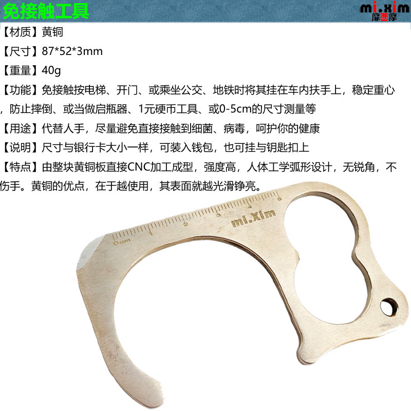 Elevador sin contacto Open Door Opener Herramientas de monedas Herramientas de medidor de código Colgante de llavero Latón puro