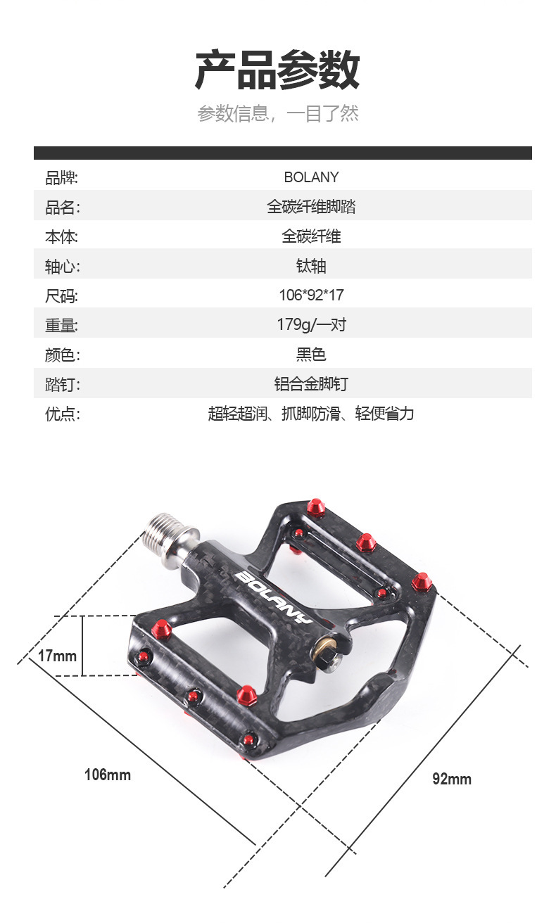 BOLANY pedales de bicicleta de fibra de carbono San Peilin pedales de bicicleta de montaña aleación de titanio pedales antideslizantes pedales de pie