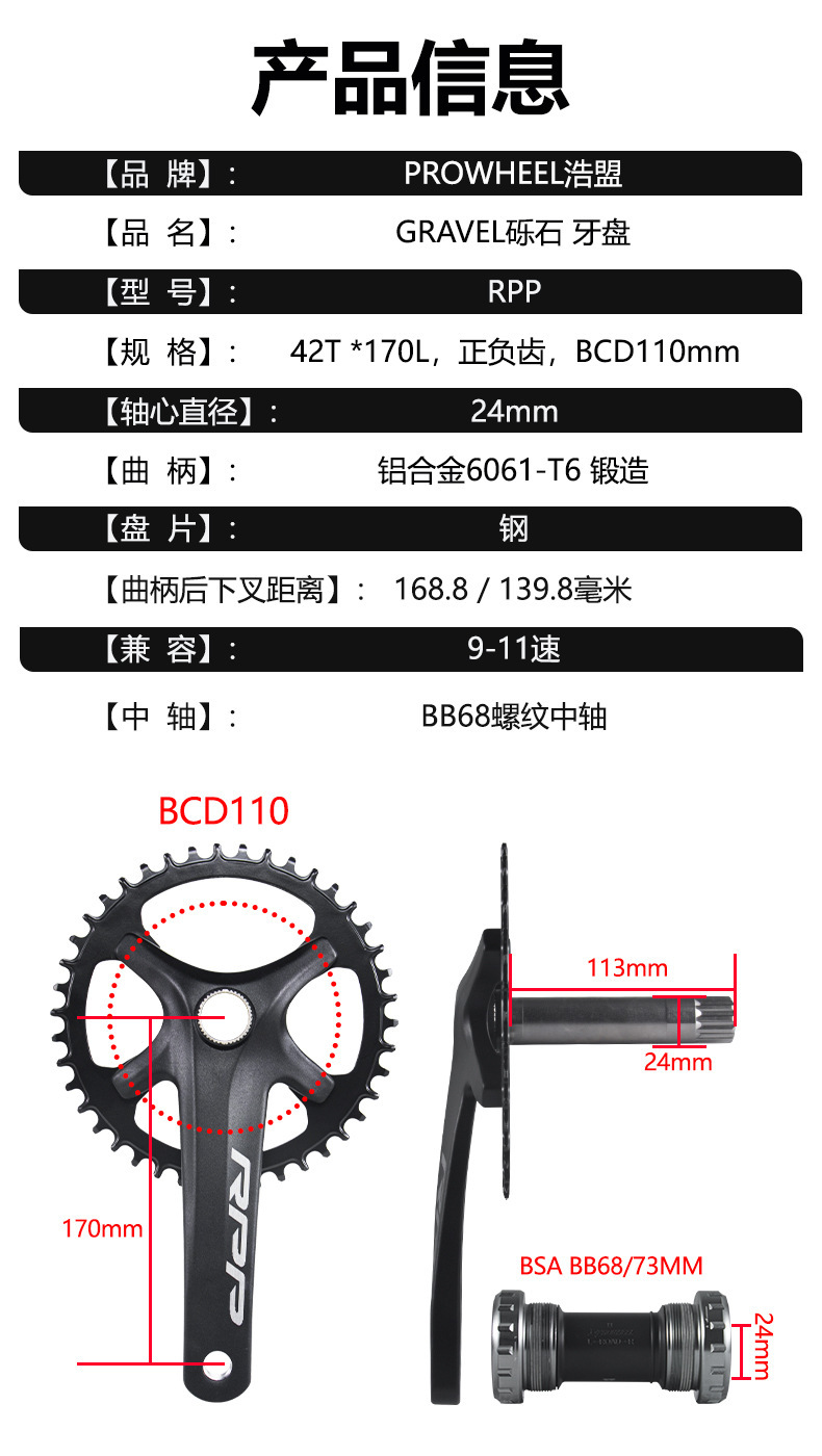 Haomeng bicicleta de montaña grava diente placa 110BCD aleación de aluminio hueco manivela integrada positiva y negativa diente placa única 42T