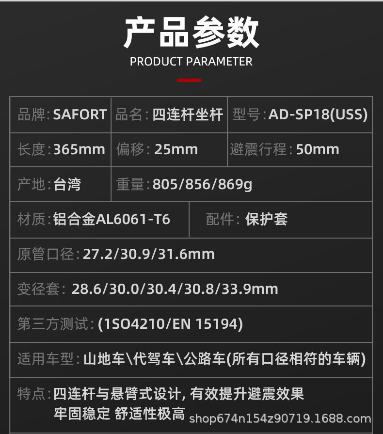 Taiwán SAFORT cuatro-Link amortiguador asiento Rod mountain bike off-road amortiguador asiento tubo 27,2/31,6mm