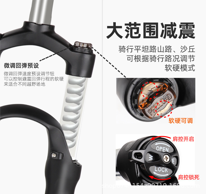 Amortiguador de presión de aire de bicicleta de montaña horquilla delantera resorte de aceite mecánico de 26 pulgadas 27,5 amortiguador de control de alambre de hombro horquilla mágica de 29 pulgadas
