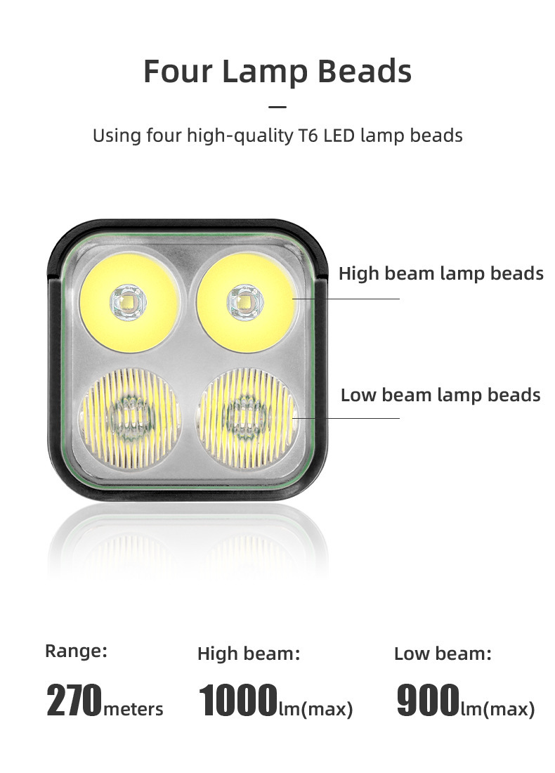 Bicicleta de cuatro cabezas lámpara USB recargable Faro de aleación de aluminio faro 1800 lúmenes faro equipo de equitación
