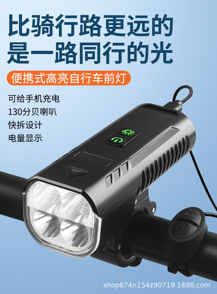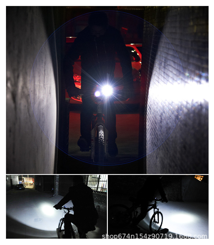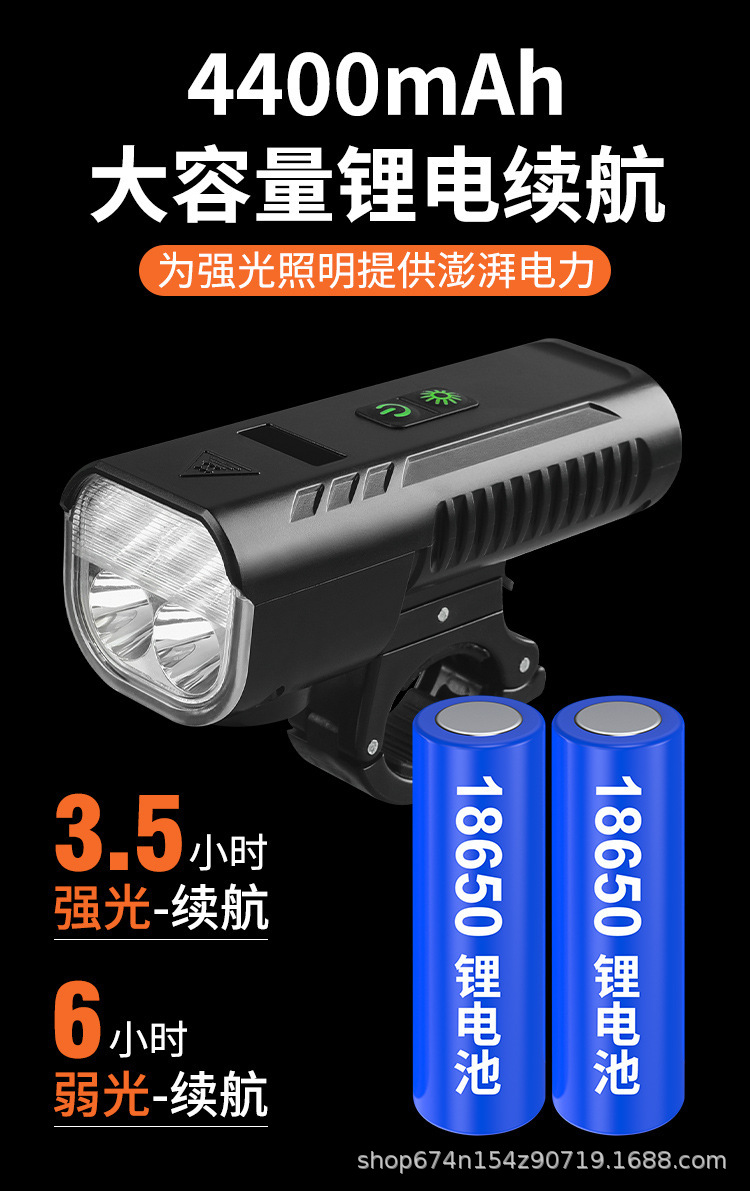 Luz de la bicicleta de carga USB cuerno faro T6 Pantalla de potencia de la bici de montaña de conducción nocturna equipo de equitación de iluminación