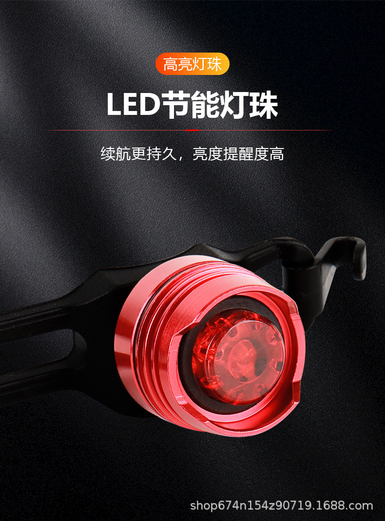LED de aleación de aluminio luz trasera de alto brillo Luz de rubí casco de seguridad luz de advertencia bicicleta equipo de luz de rana