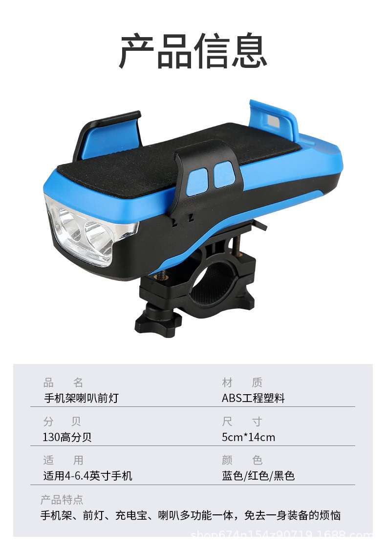 Faro de bicicleta tesoro de carga USB con soporte de teléfono móvil bicicleta cuerno luz teléfono móvil soporte de seguridad equipo de equitación