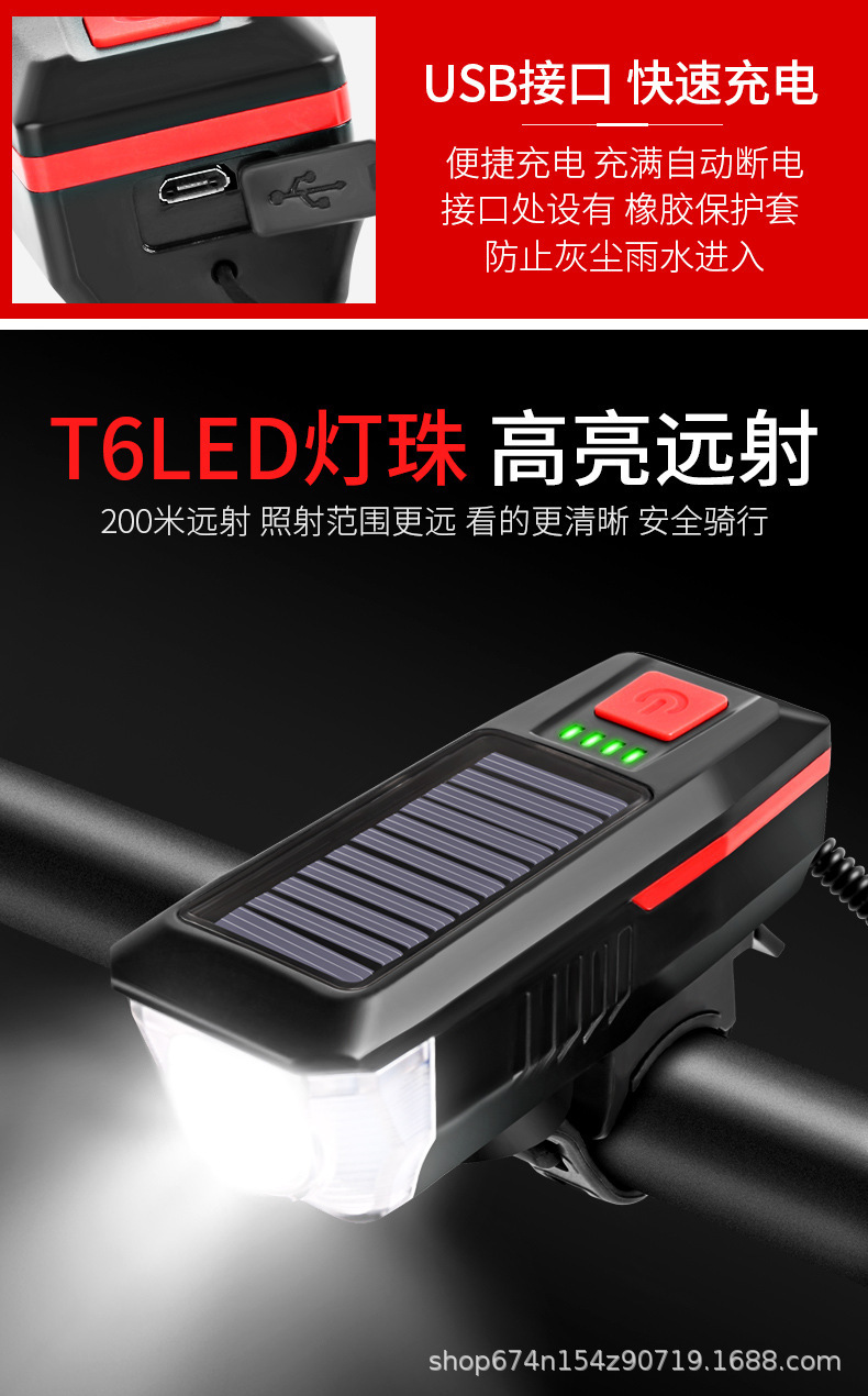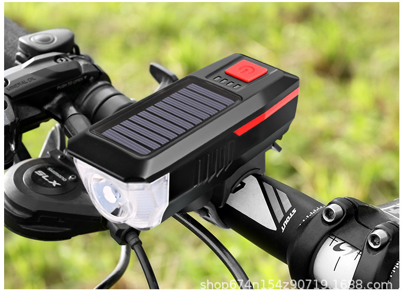 Faro de luz de bicicleta Luz de cuerno solar USB recargable faro bicicleta luz fuerte linterna equipo de equitación transfronteriza