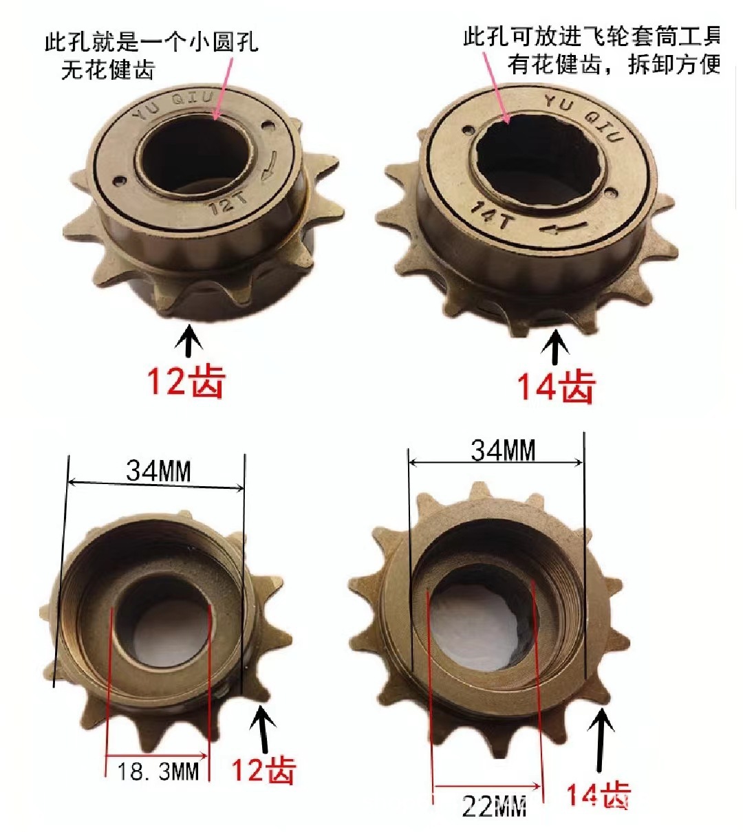 Volante de bicicleta 14 dientes 12 dientes volante 12 dientes volante 14 dientes accesorios de una sola pieza volante 14 T Boca Grande 14 T BOCA PEQUEÑA