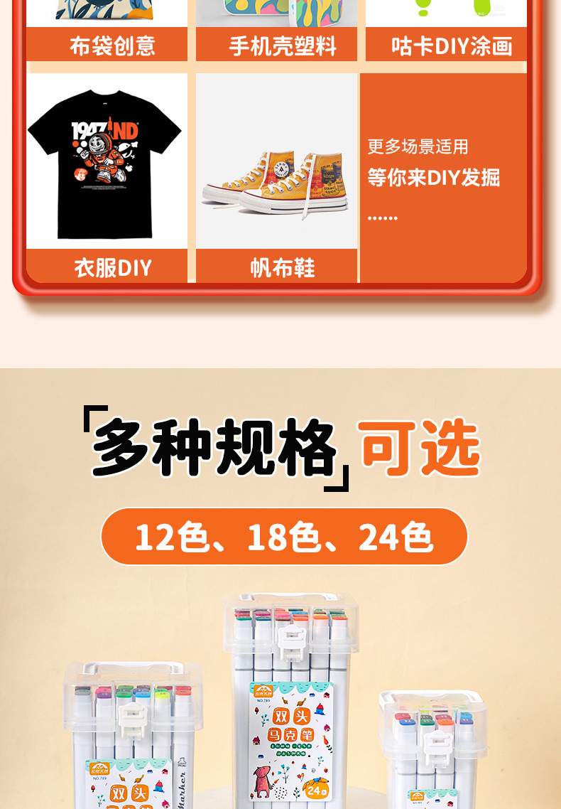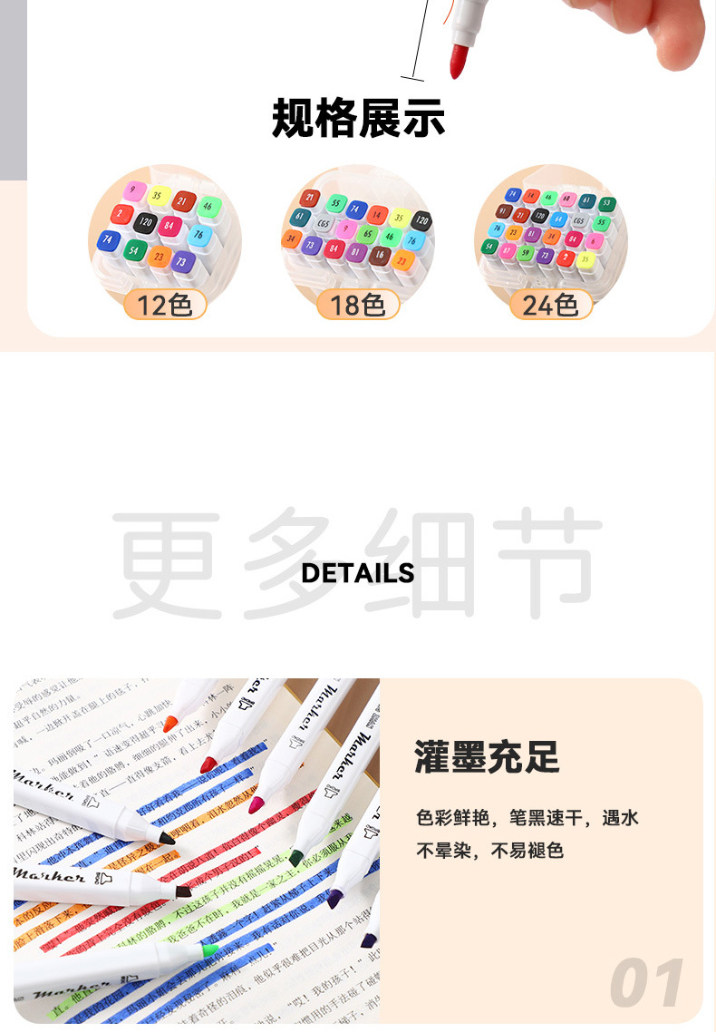 | Color | Marcador de doble cabeza de 12 colores, marcador de doble cabeza de 18 colores, marcador de doble cabeza de 24 colores |