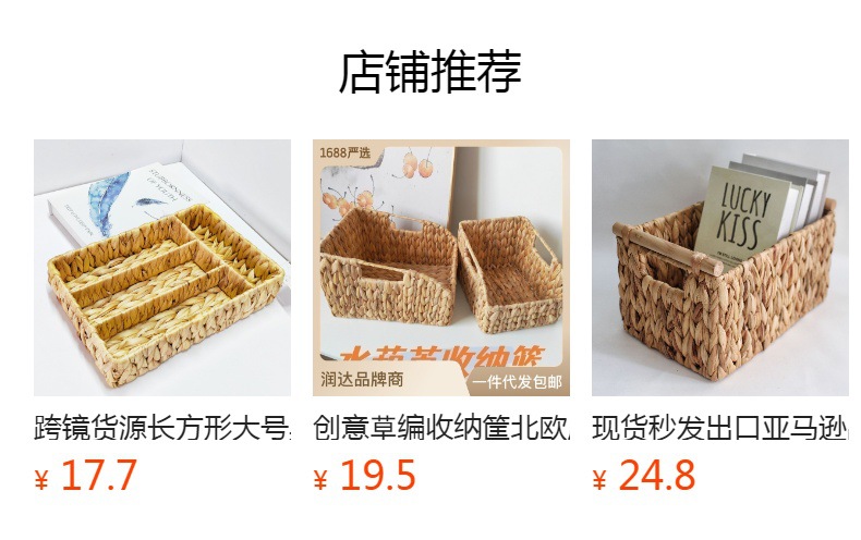 Amazon popular caja de almacenamiento papelería canasta de agua de la cesta de paja de la joyería de control remoto cesta de almacenamiento de tejido