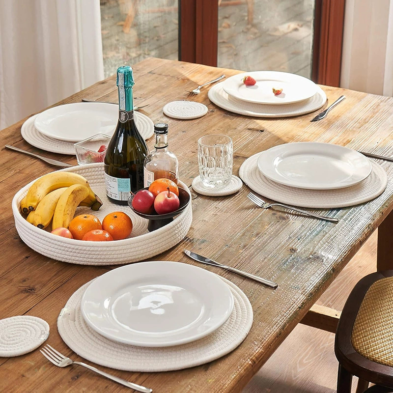 Mantel de mesa Algodón de alta calidad Tejido de cuerda de algodón Almohadilla de aislamiento de Amazon Alfombrilla de olla redonda Alfombrilla de cuenco Alfombrilla de plato antideslizante y antiescaldado