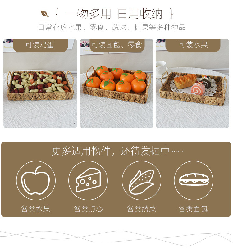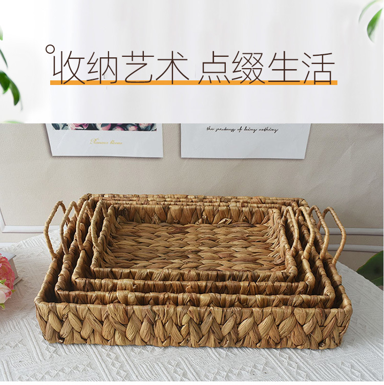 Jacinto de agua cesta de pan de hierba Cocina mesa de comedor en casa con mango que sostiene la cesta aperitivos de frutas cesta de aperitivos