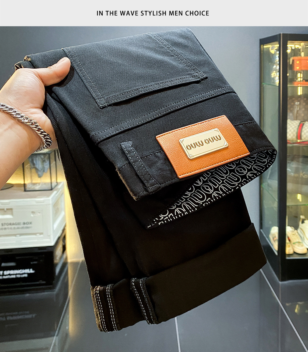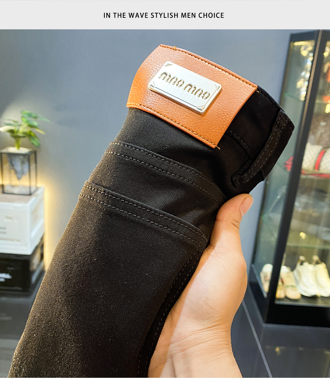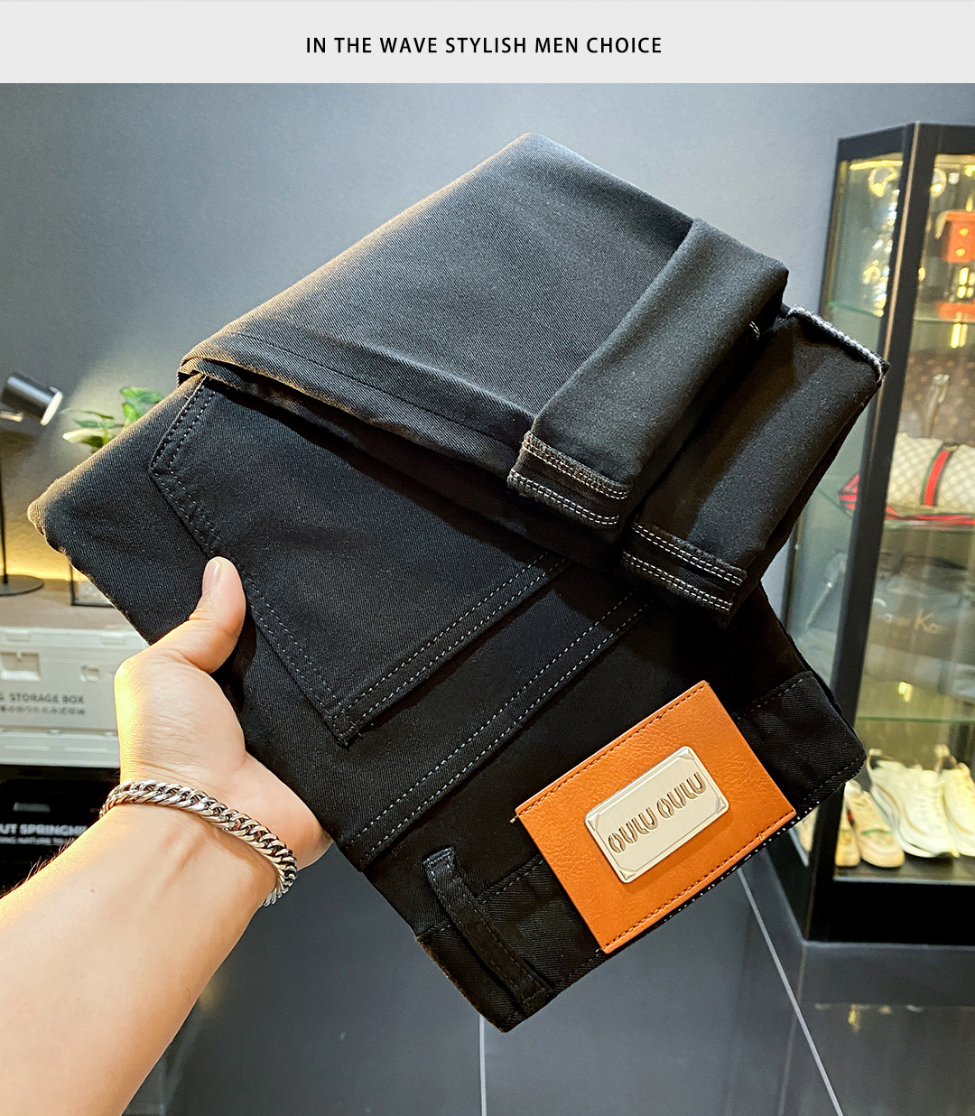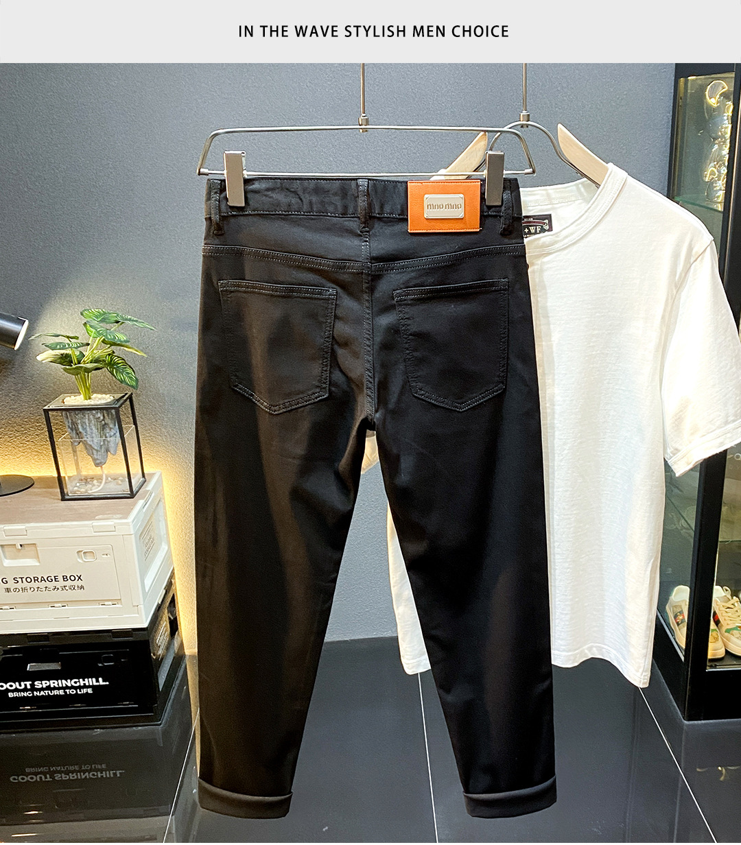 High-end Lesel verano delgado puro negro jeans hombre delgado pie pequeño pantalones americanos de calzado de calzado