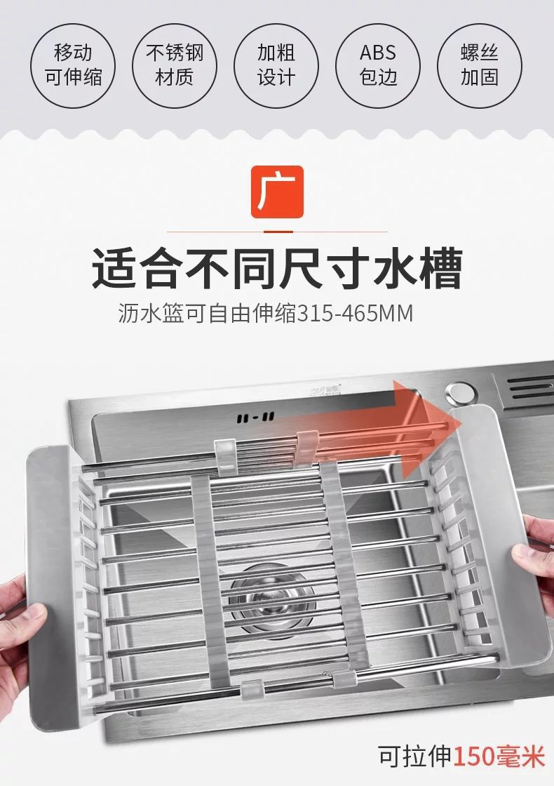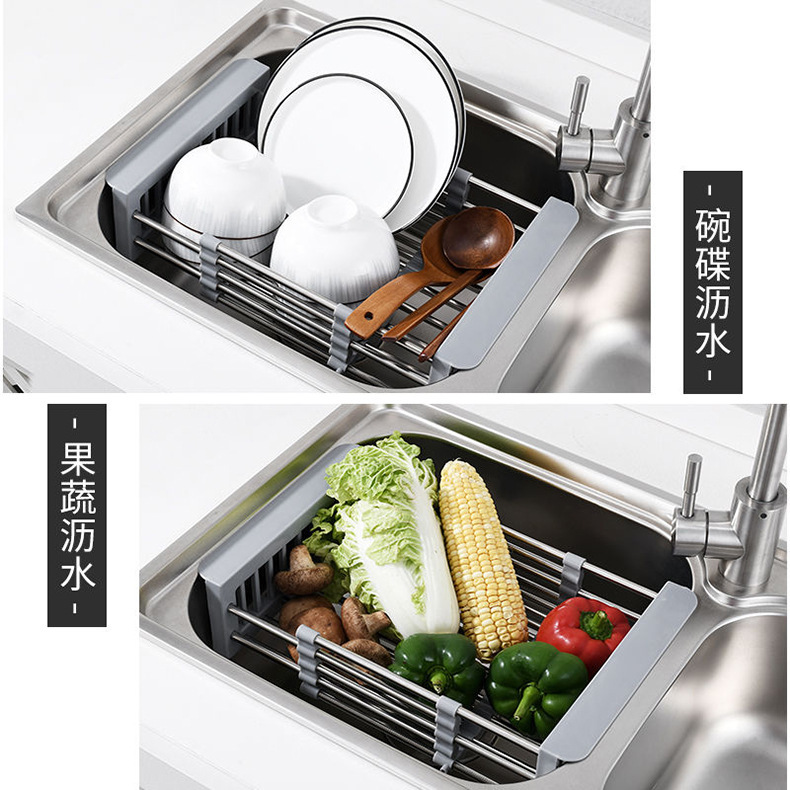 Cesta de drenaje de acero inoxidable ajustable, bandeja de drenaje, platos de frutas y verduras multifuncionales, lavavajillas de cocina, lavavajillas