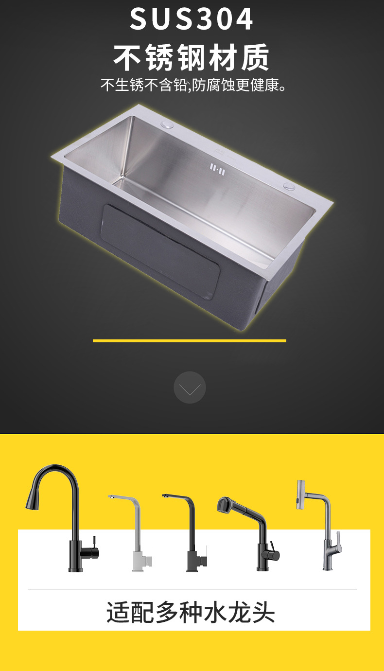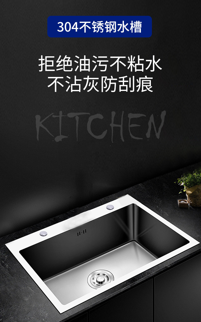 Venta directa de fábrica, lavabo hecho a mano para proyectos hoteleros, lavabo de agua engrosado, lavabo individual para cocina doméstica, fregadero de acero inoxidable sus304