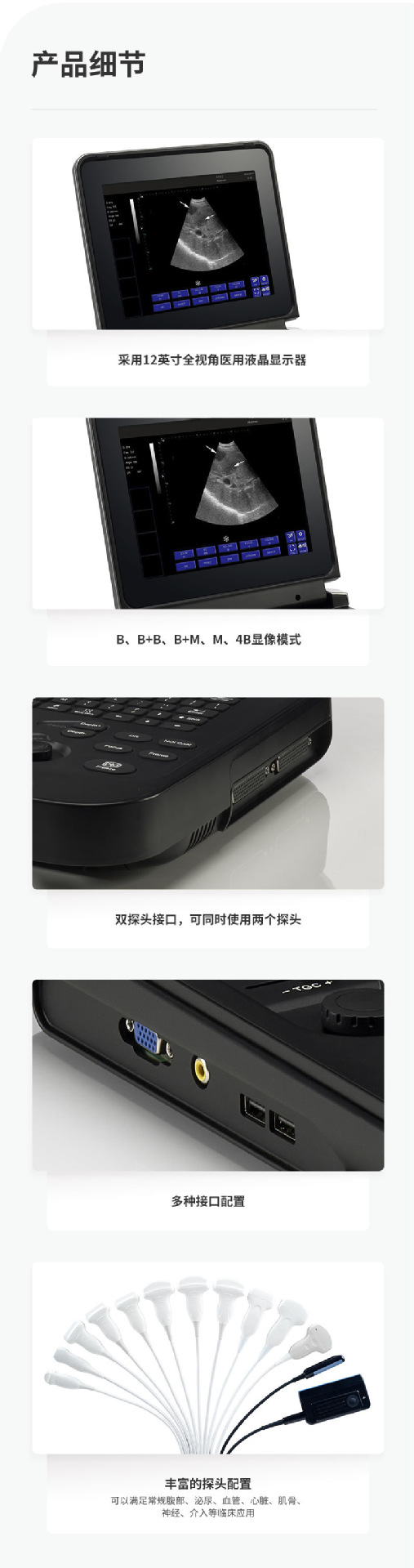 | Especificaciones del producto | Estándar (sonda mecánica) 10 tipos de pseudo - color, estándar (sonda electrónica de Chen convexo) 16 tipos de pseudo - color, alto juego (sonda mecánica) 16 tipos de pseudo - color, alto juego (sonda electrónica de matriz convexo) 16 tipos de pseudo - color, pequeño animal super drk - vdl121a en blanco y negro, pequeño animal super color drk - vml151a, ultrasonido inalámbrico (cabeza única) drk - p1u |