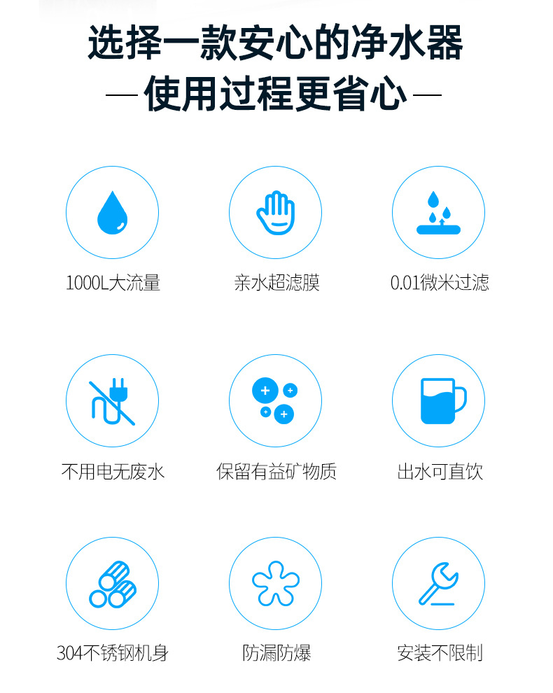 Purificador de agua de acero inoxidable doméstico de elevación vertical cocina filtro de agua del grifo ultrafiltro de gran caudal