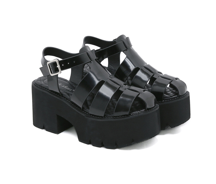 2025 nuevas sandalias de plataforma europeas y americanas con punta redonda y correas y huecos en AliExpress sandalias casuales de suela gruesa de verano con tacón grueso y suela suave