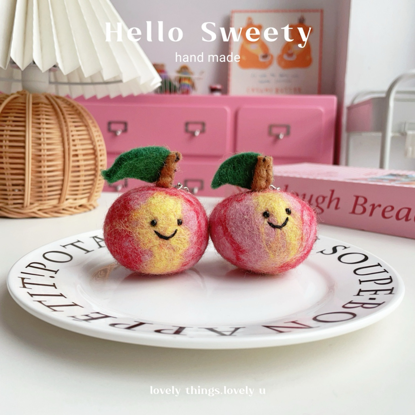 Nepal hecho a mano lana fieltro melocotón fruta colgante llavero bolso colgante chicas mejores parejas regalo lindo