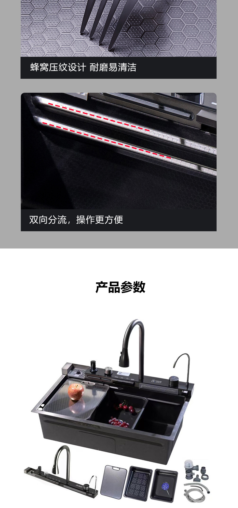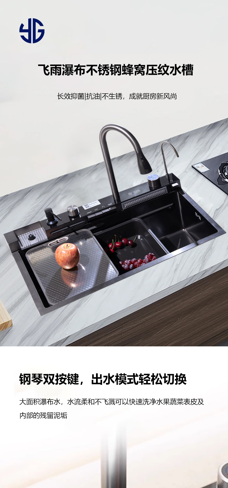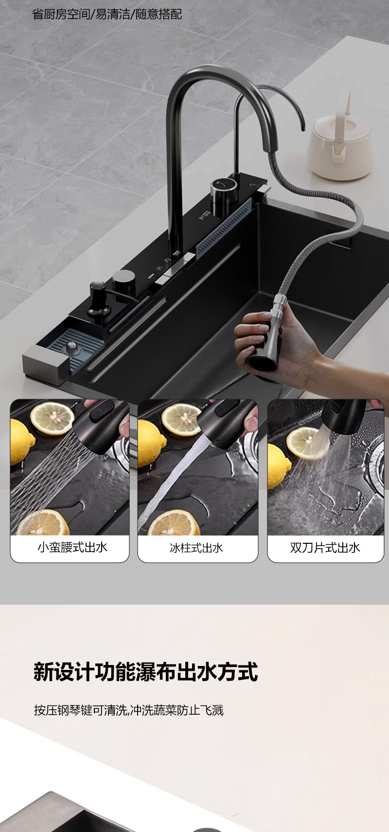 Ballena acero inoxidable gran tanque único multifuncional estampado pantalla digital cocina nano fregadero lavavajillas doméstico lavabo de verduras
