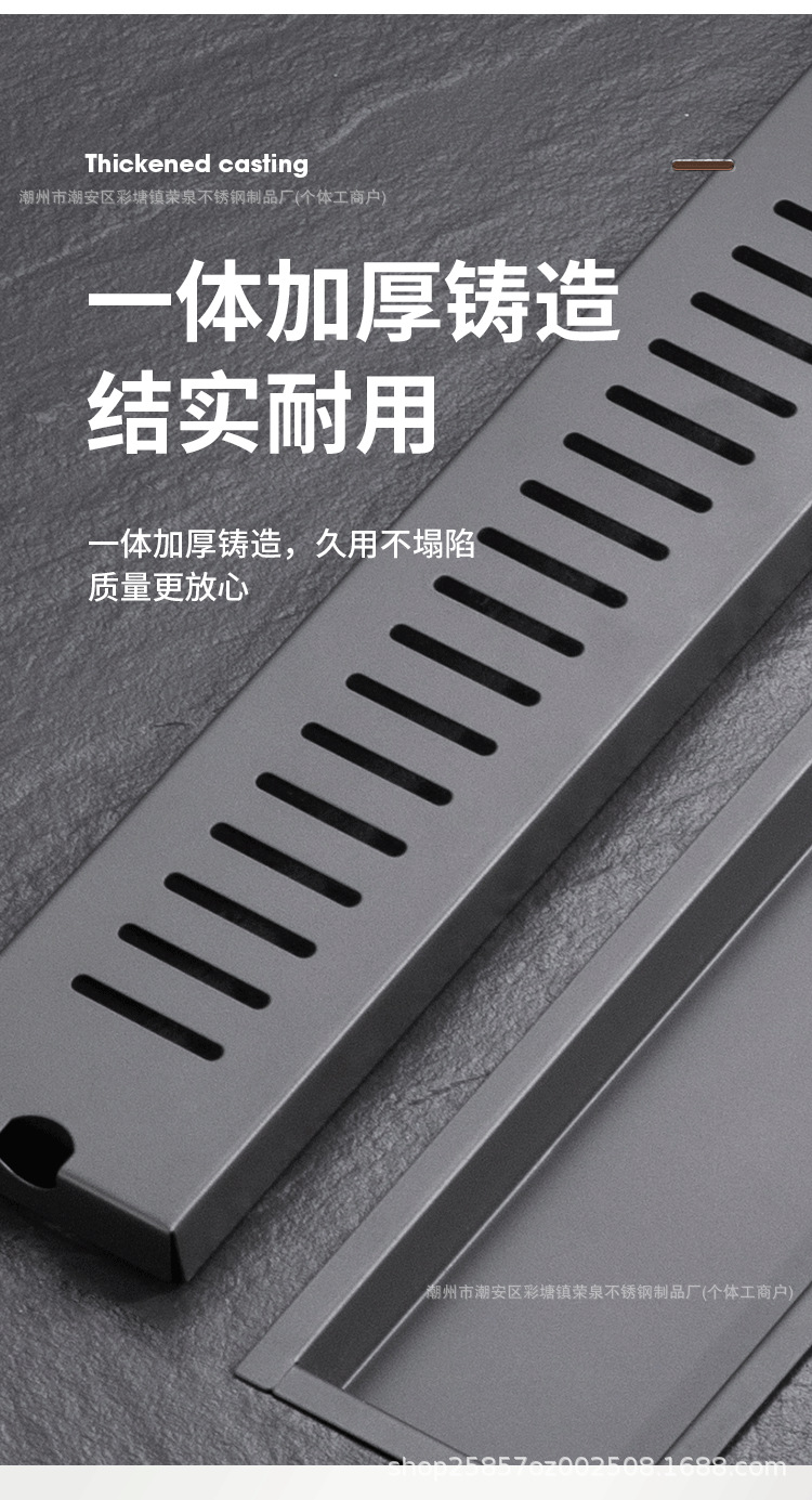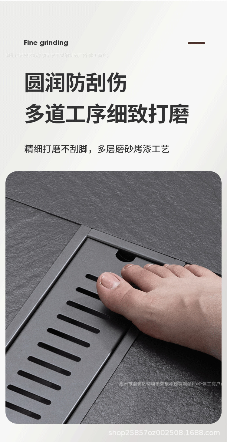 Negro 304 acero inoxidable largo drenaje de suelo hotel sala de ducha de gran volumen de ingeniería alargada desagüe de suelo antiolor tira al por mayor