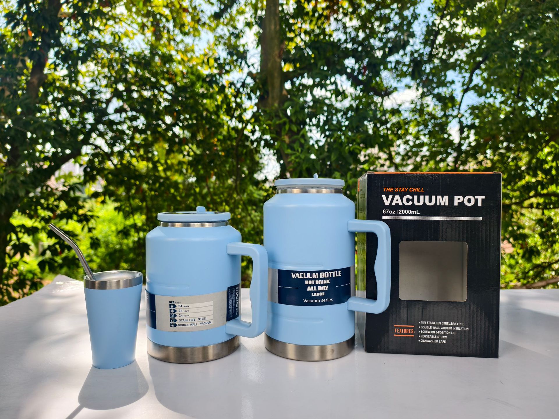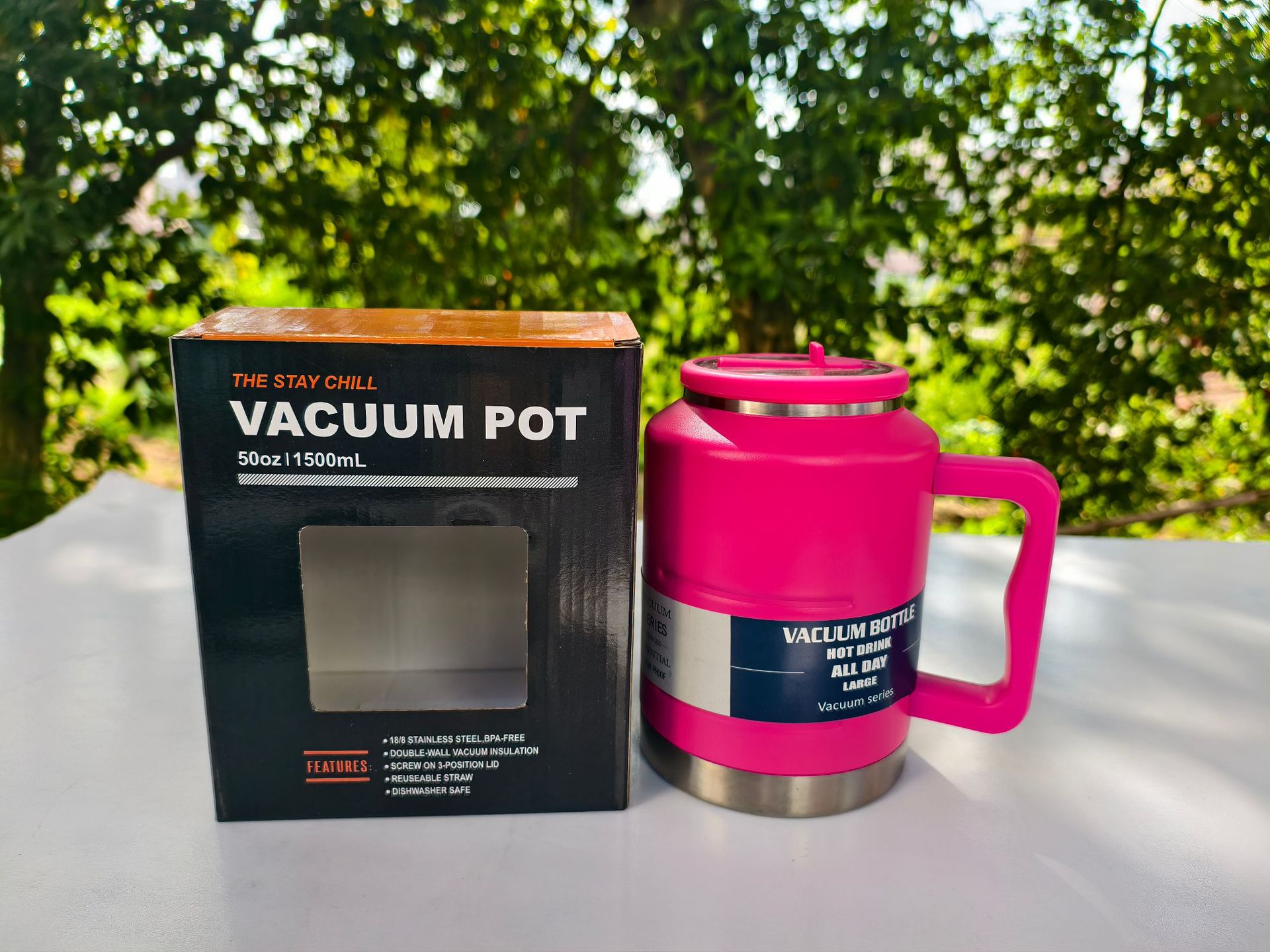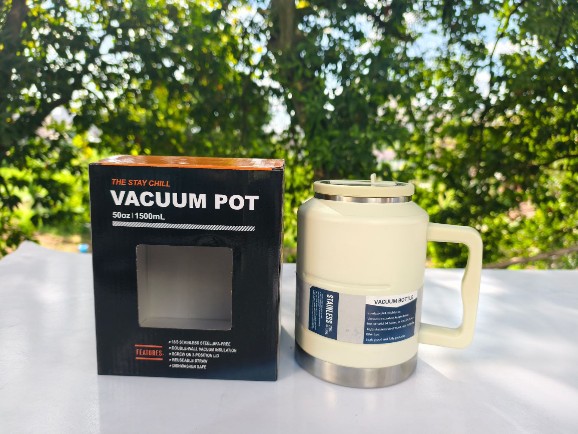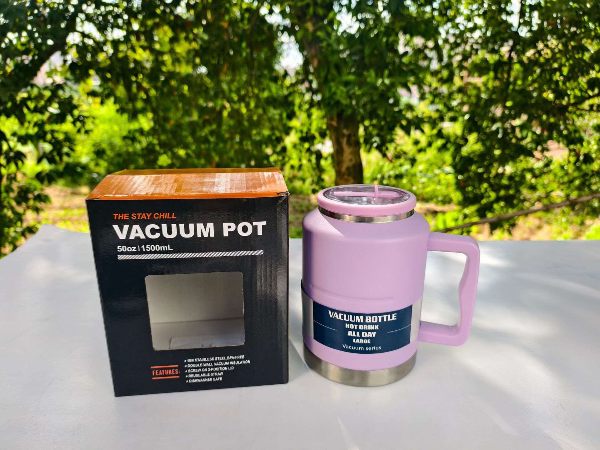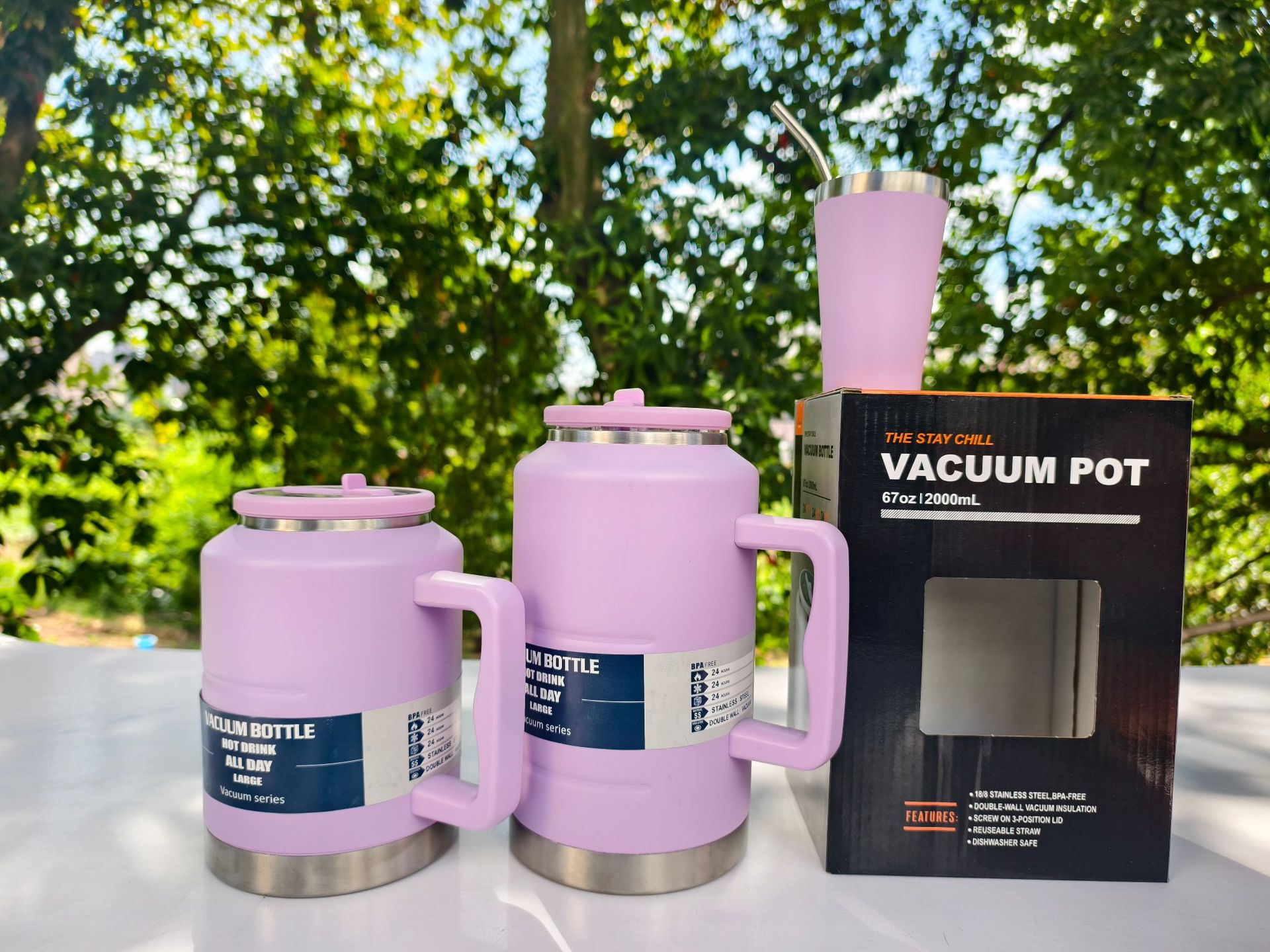 Nuevo estilo de gran capacidad con mango Toneladas Toneladas Toneladas Botellas deportivas de montañismo al aire libre Taza de vacío de acero inoxidable Taza de vacío