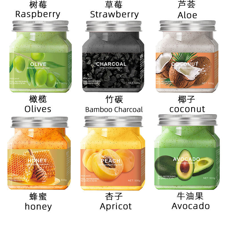 Exfoliante corporal de aguacate, exfoliación facial con ácido de frutas, piel de gallina, versión en inglés, comercio exterior transfronterizo al por mayor