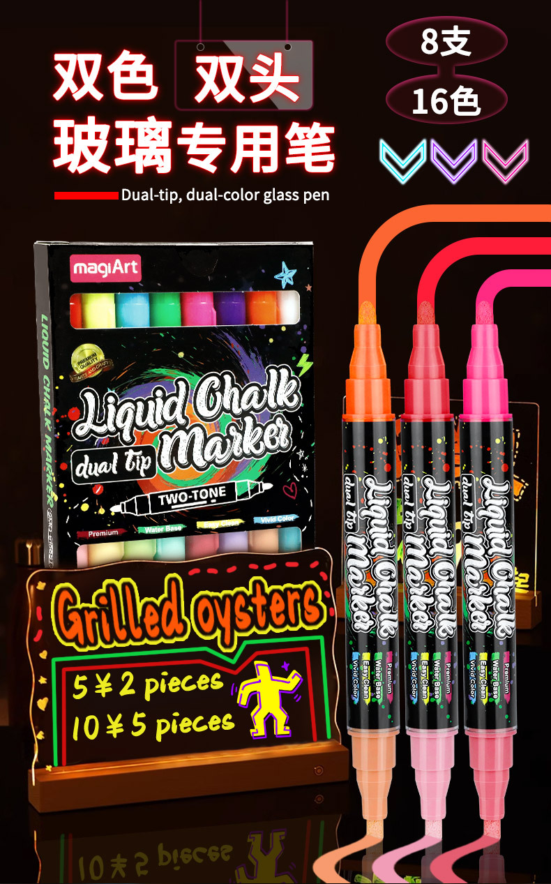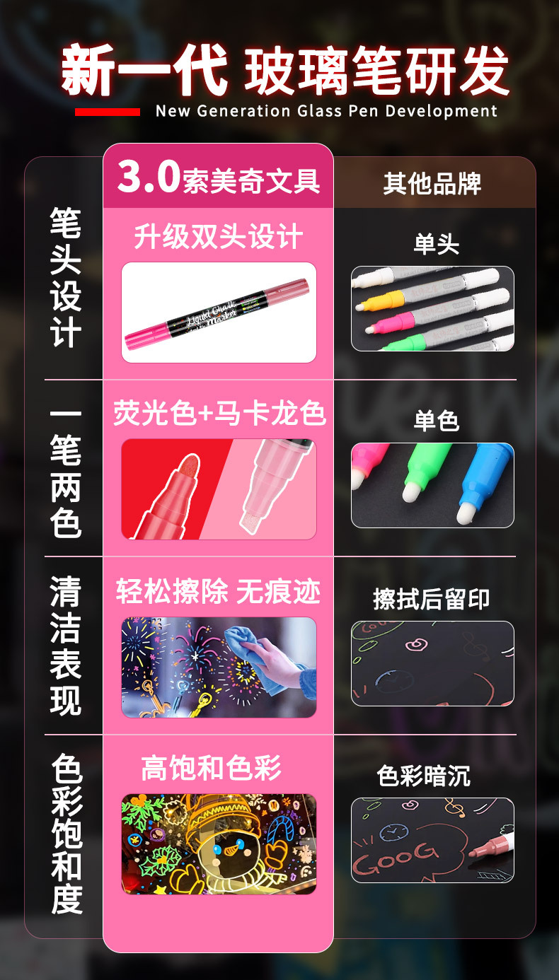 Somic bolígrafo de vidrio borrable de dos colores de dos cabezas LED bolígrafo de panel de luz publicitaria pizarra resaltador de graffiti tiza líquida