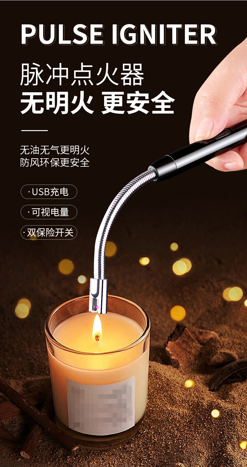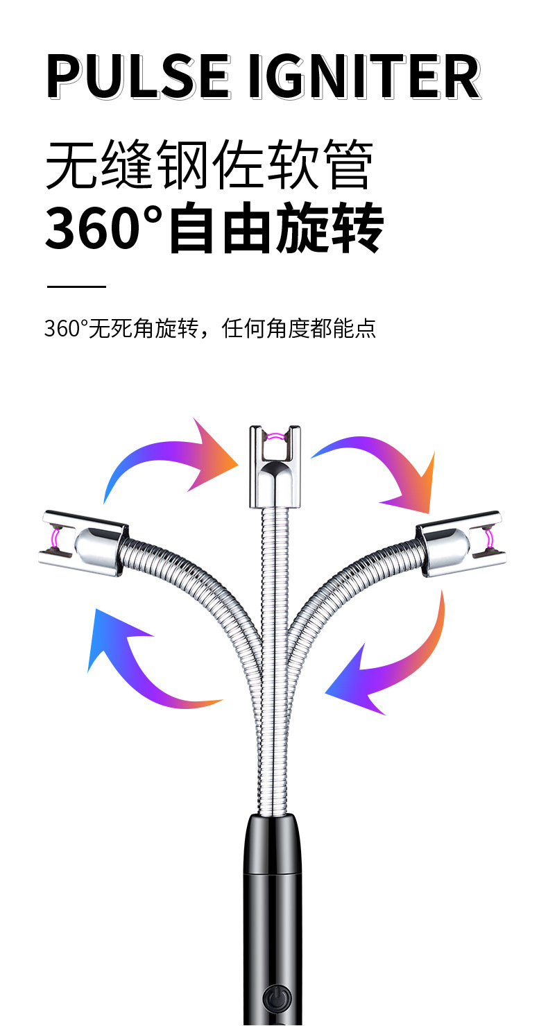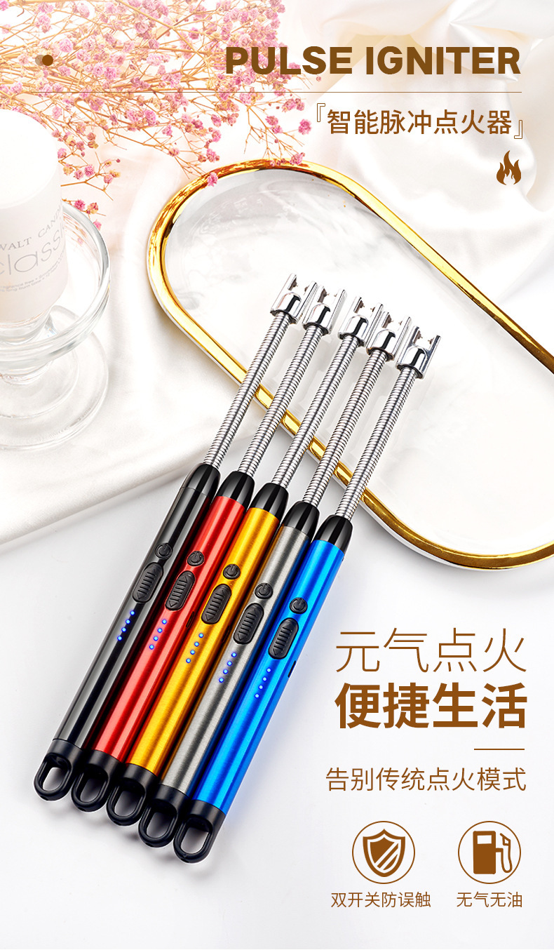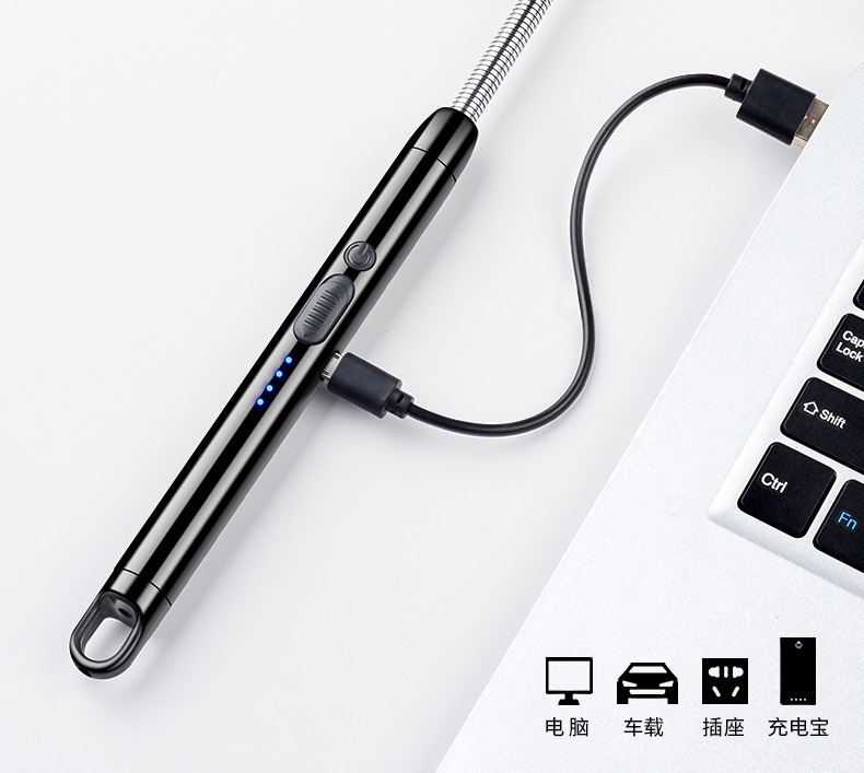 Pistola de encendido USB carga comercio exterior alargado encendedor vela estufa de gas manguera metálica encendedor de arco