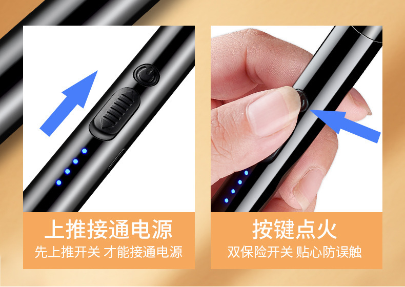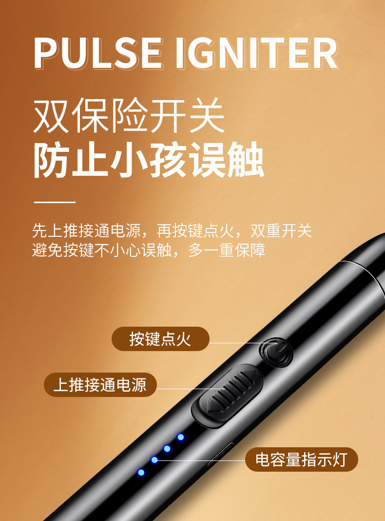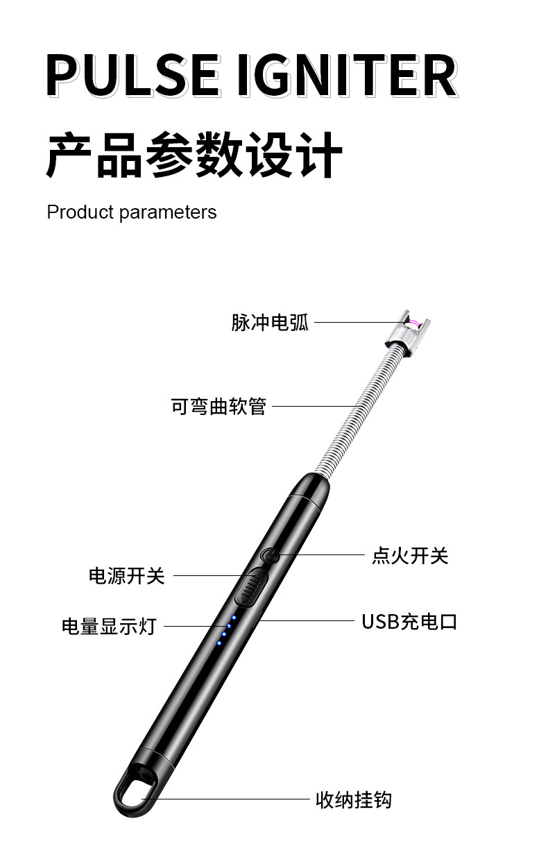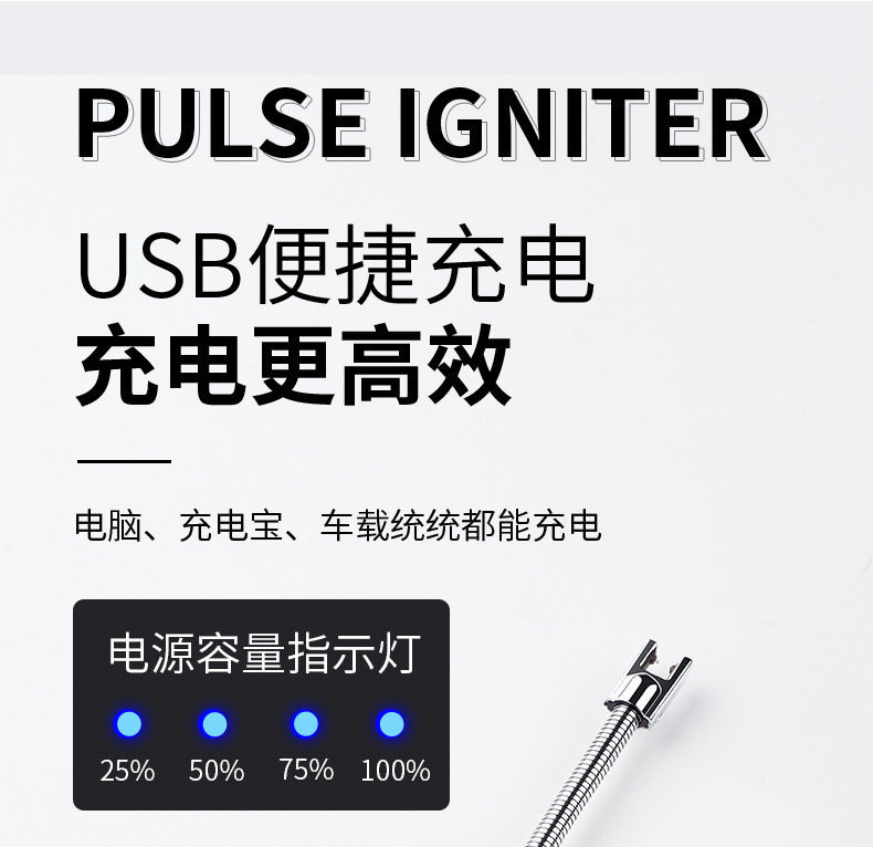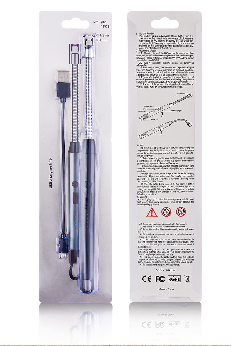Pistola de encendido USB carga comercio exterior alargado encendedor vela estufa de gas manguera metálica encendedor de arco