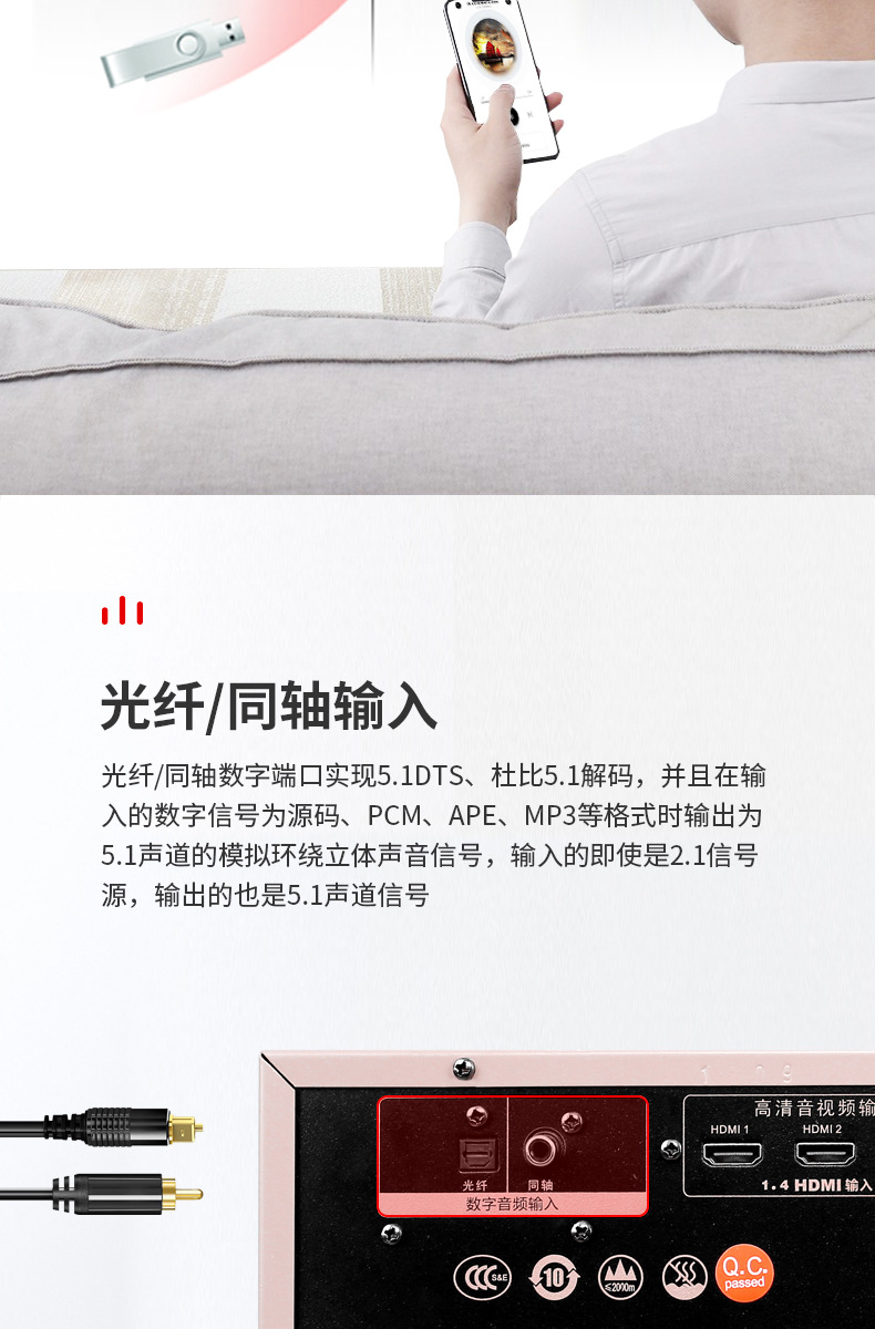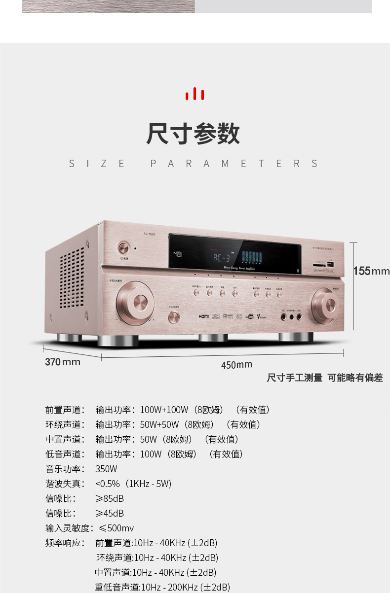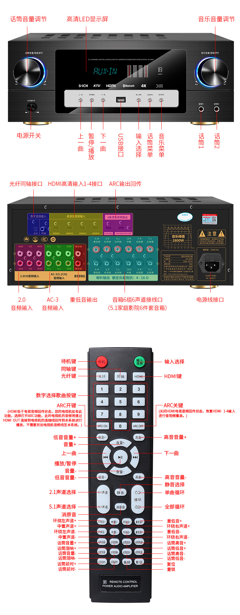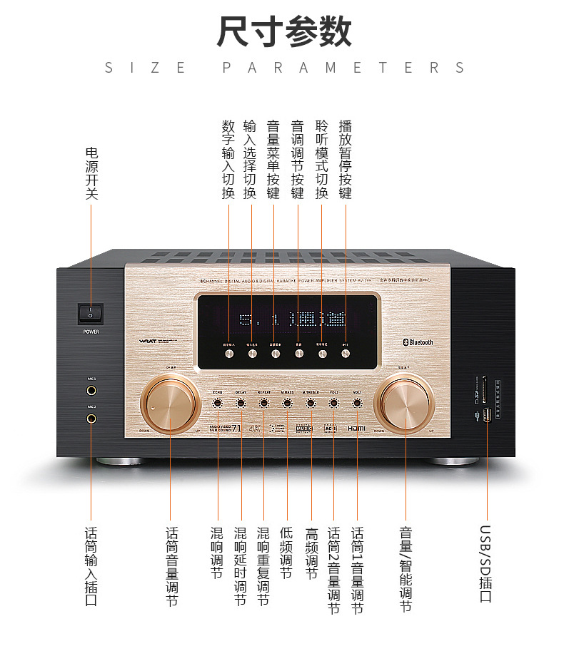 HD HDMI profesional de alta potencia 5,1 canales 4K hogar karaoke Bluetooth karaoke DTS amplificador de potencia