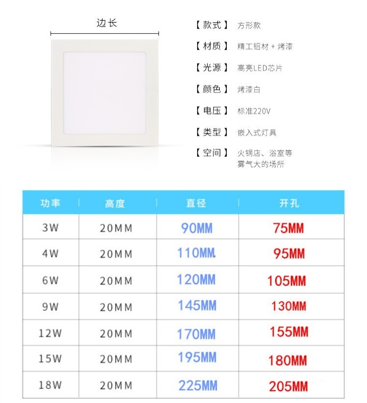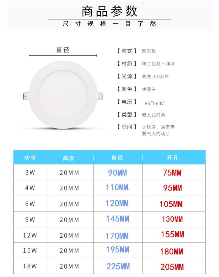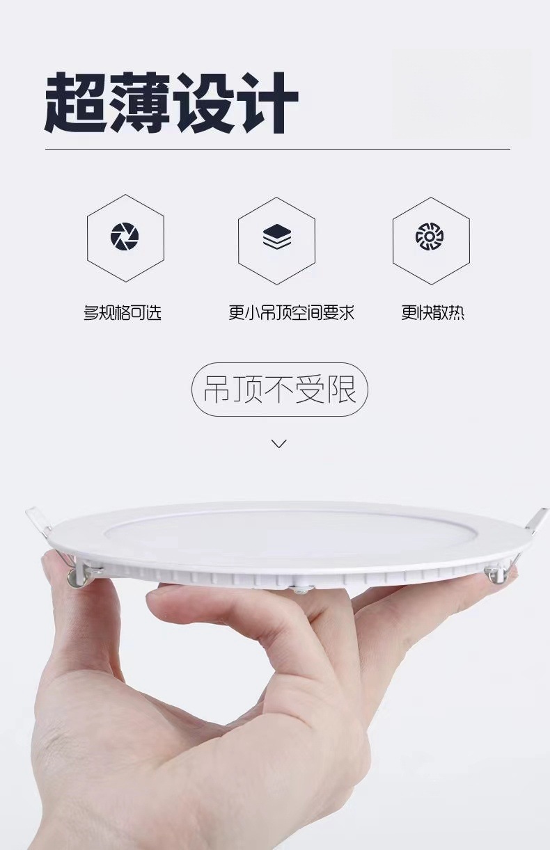 Lámpara ultrafina cuadrada redonda, downlight especial para techo pequeño, luz plana delgada, luz de panel LED para comercio exterior