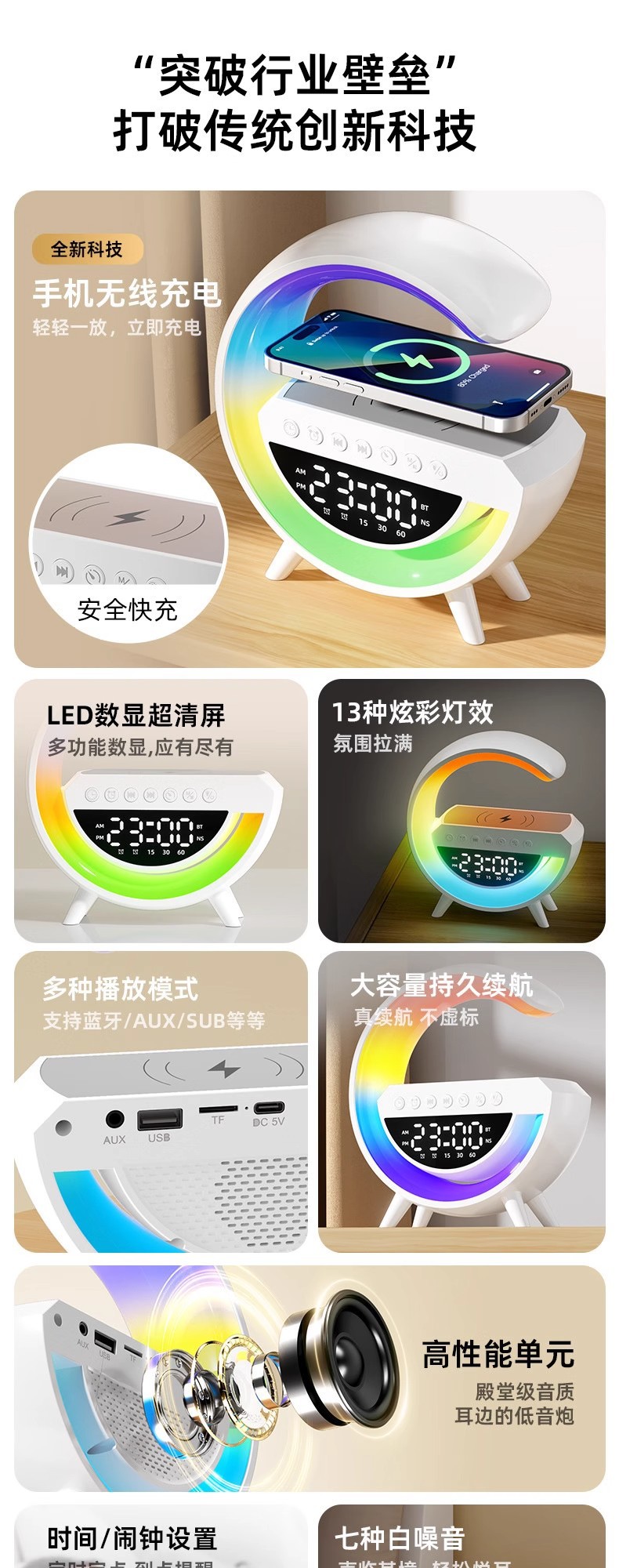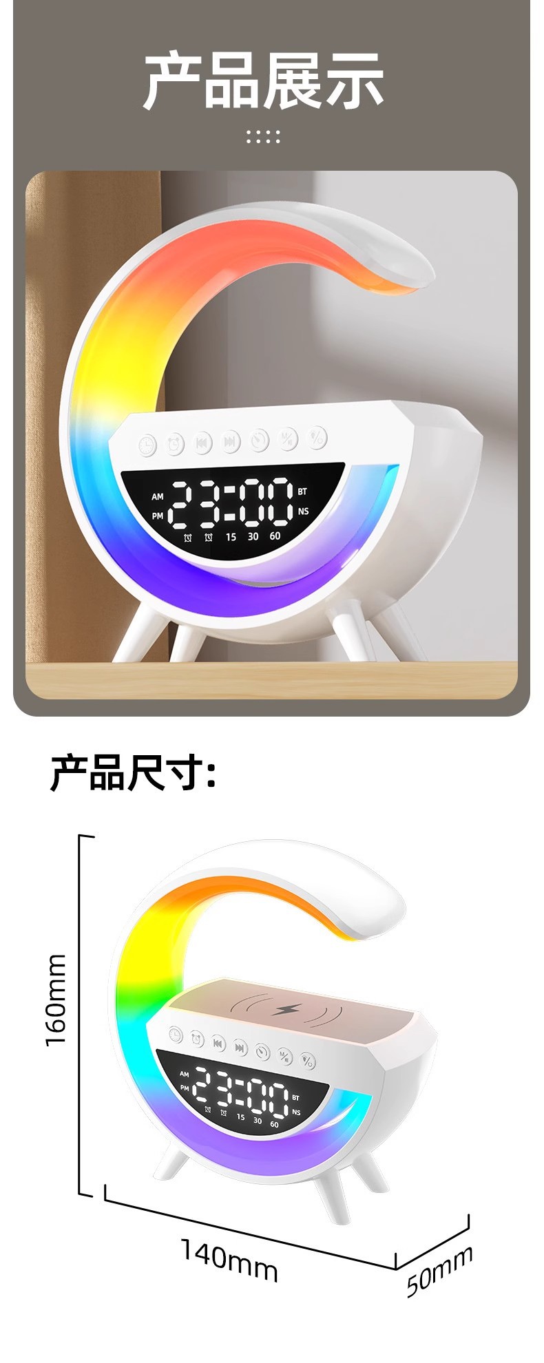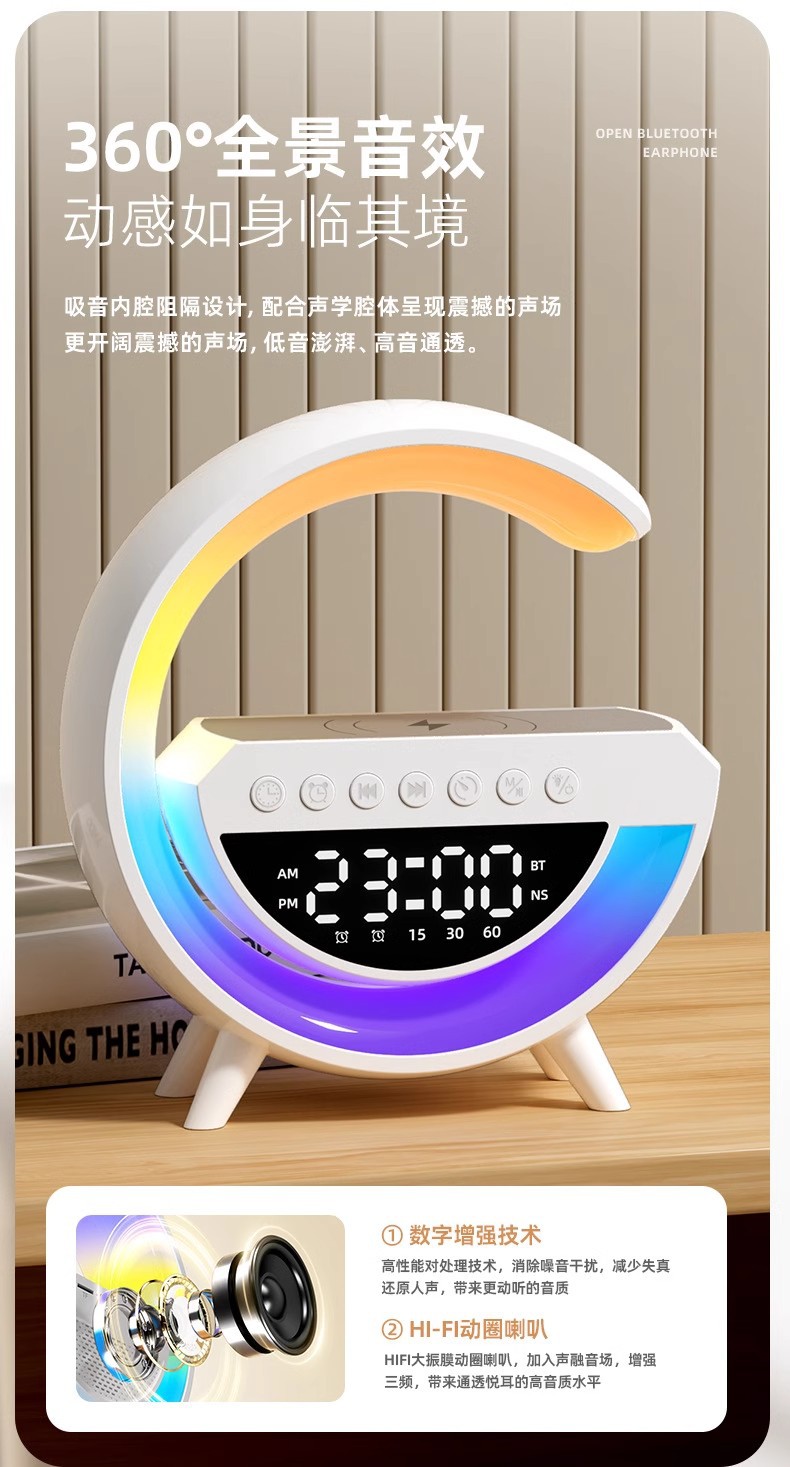 Gran explosión transfronteriza G3401mini audio inalámbrico Bluetooth inalámbrico carga de atmósfera lámpara de cabecera despertador de luz
