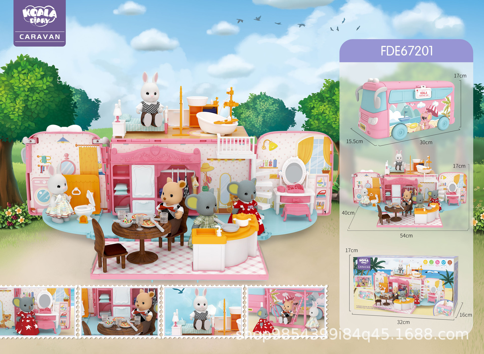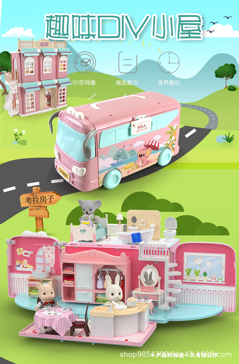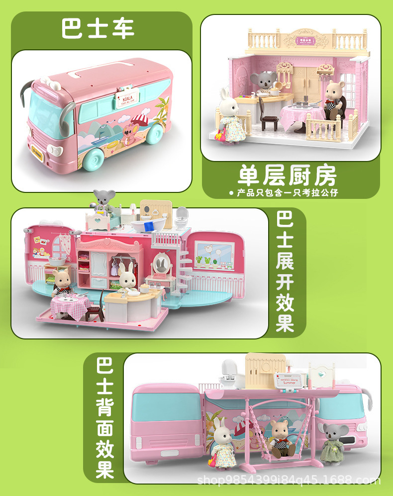 Koala Diary Bus Casa de juegos Chica Sorpresa Variedad Koala RV Niños Simulación Casa de muñecas Juguetes de escena