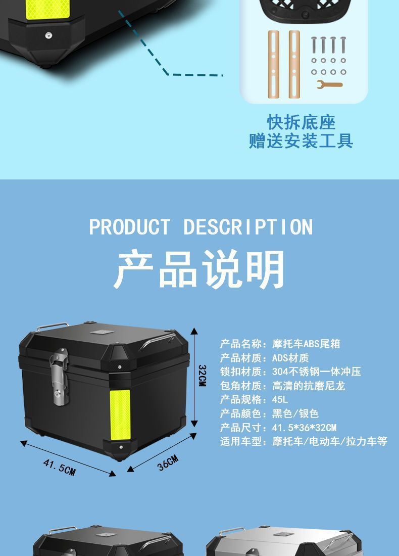Caja de respaldo para motocicleta Caja de herramientas de almacenamiento cuadrado engrosada universal para batería de pedal de gran capacidad sin aleación de aluminio