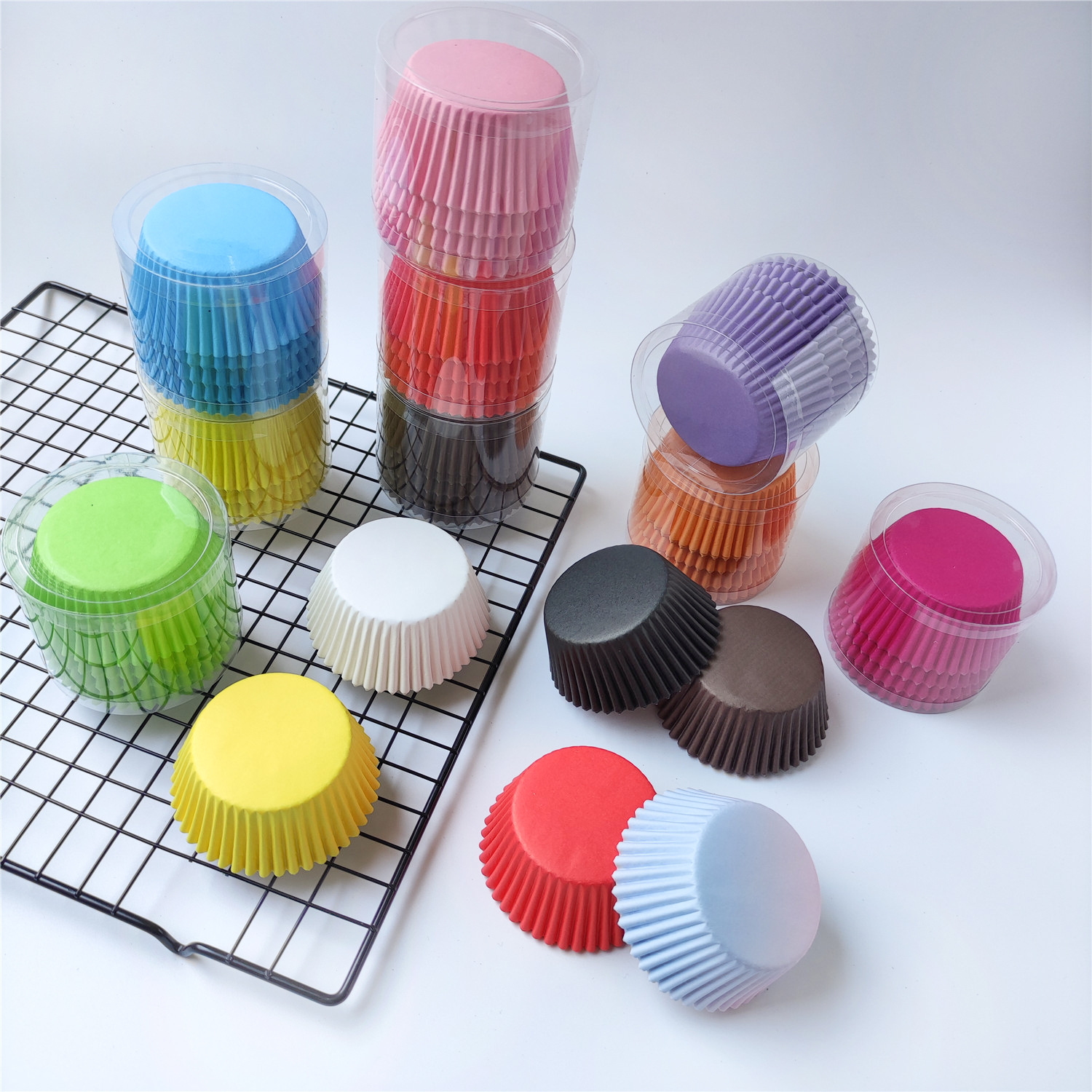 100 bancasetas para pasteles de color sólido, utensilios para hornear, papel a prueba de aceite de color para el hogar, taza grande para pasteles mezclados