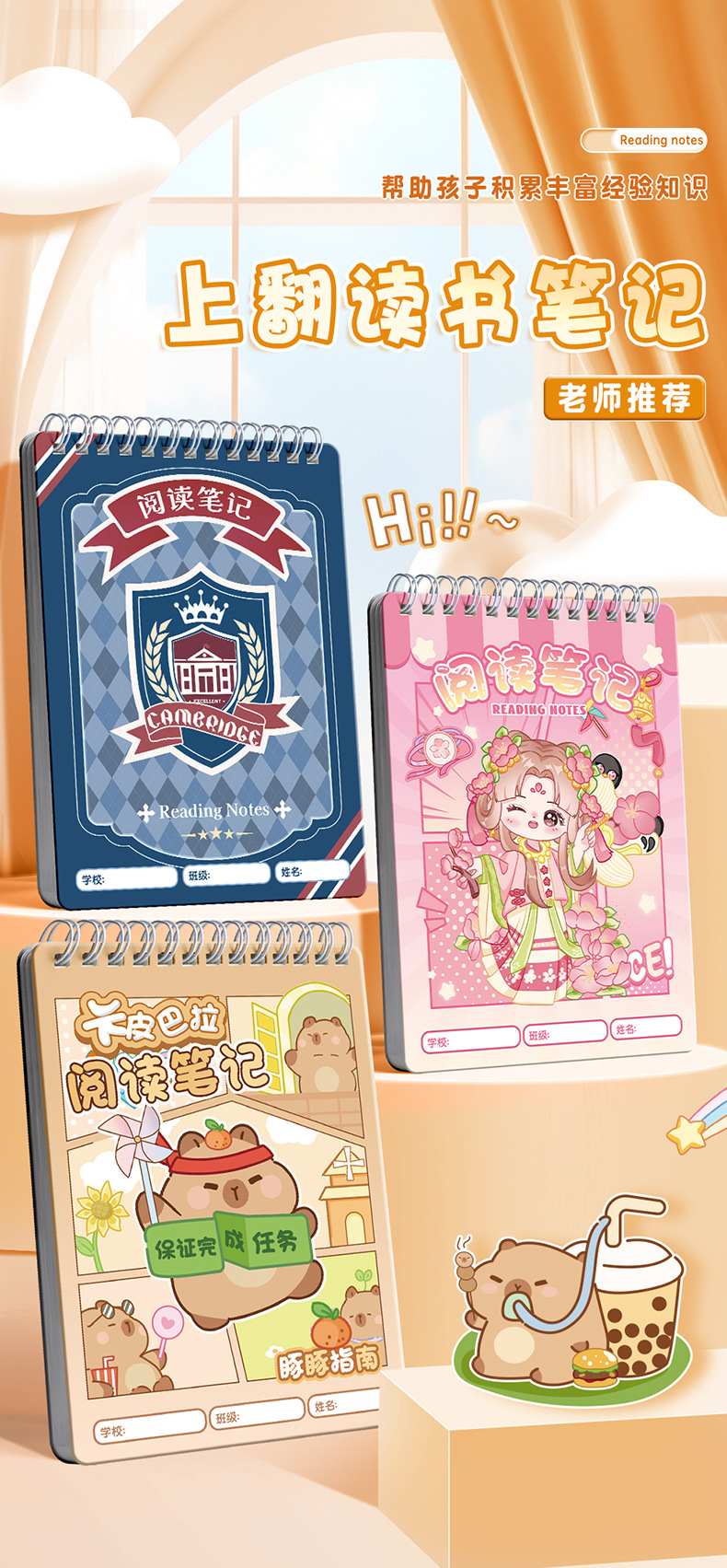 Kaba bear nuevo libro de bobina de hoja de papel de estudiantes de secundaria primaria cuadernos de lectura cuadernos de dibujos animados de alto valor facial
