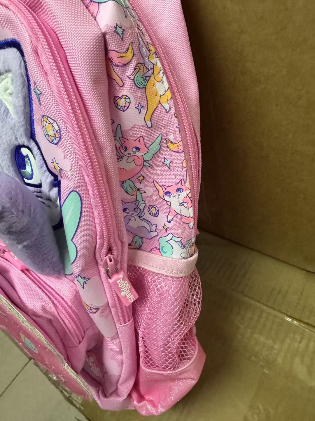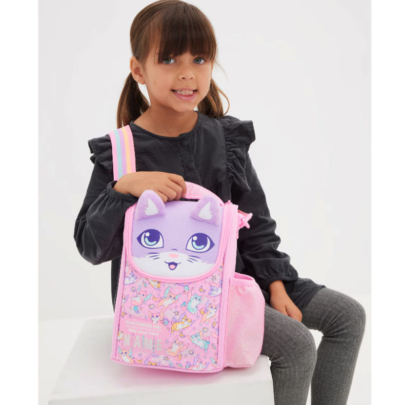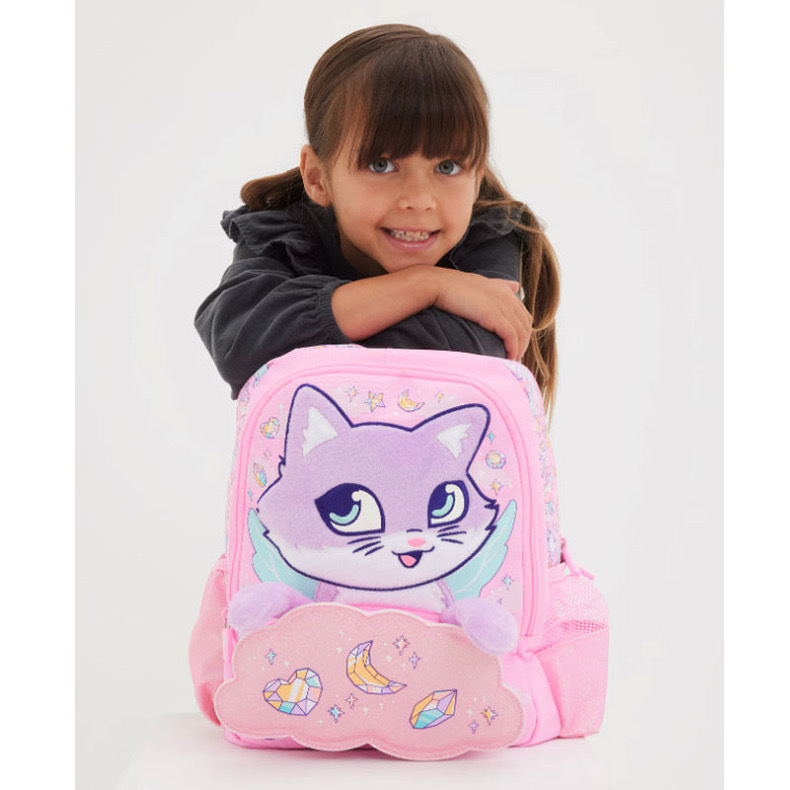 Mochila escolar australiana sonrisa para estudiantes de primaria, mochila ultraligera, rosa púrpura, gato, libro medio