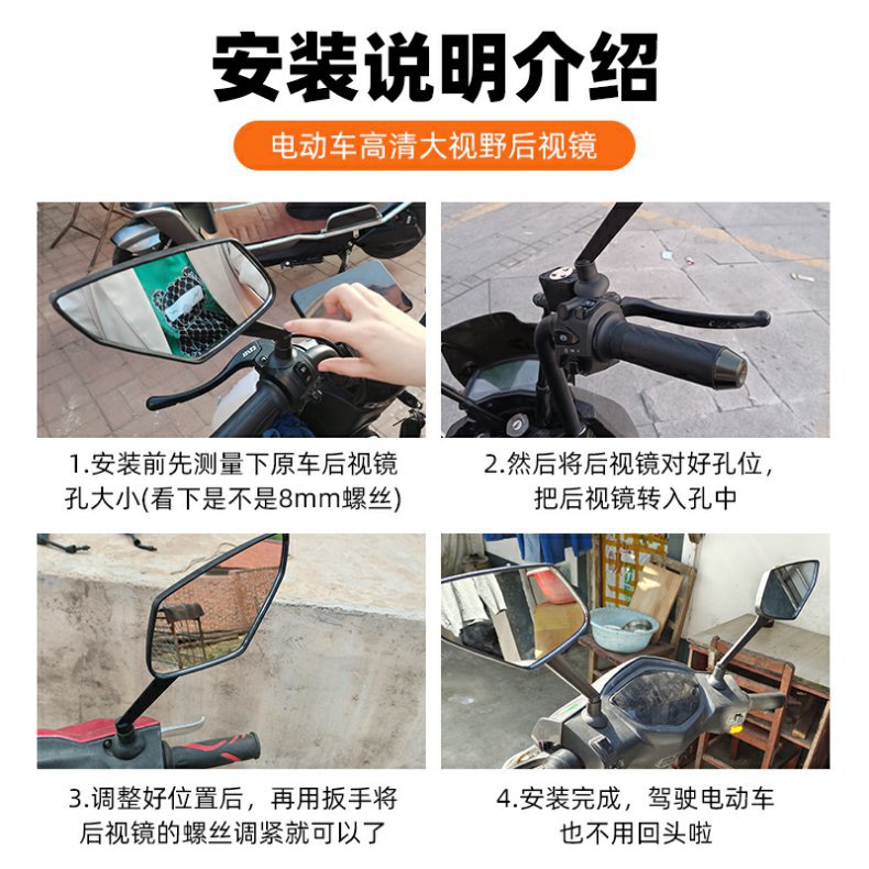 Bicicleta eléctrica espejo retrovisor batería universal coche espejo retrovisor gran campo de visión espejo convexo motocicleta eléctrica scooter espejo
