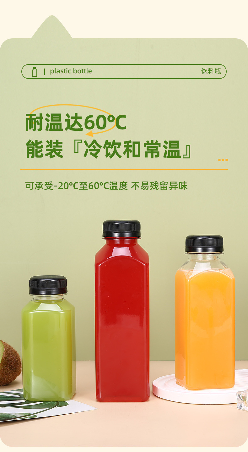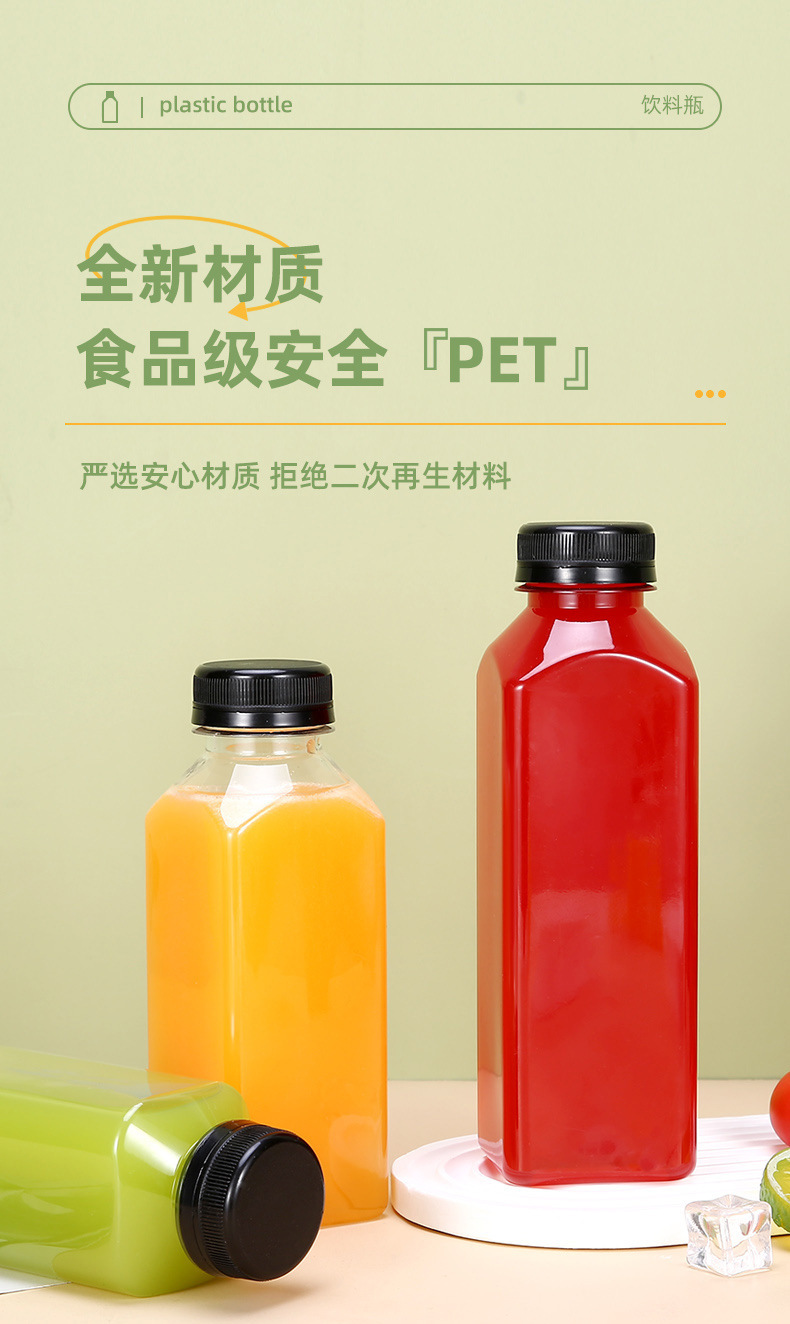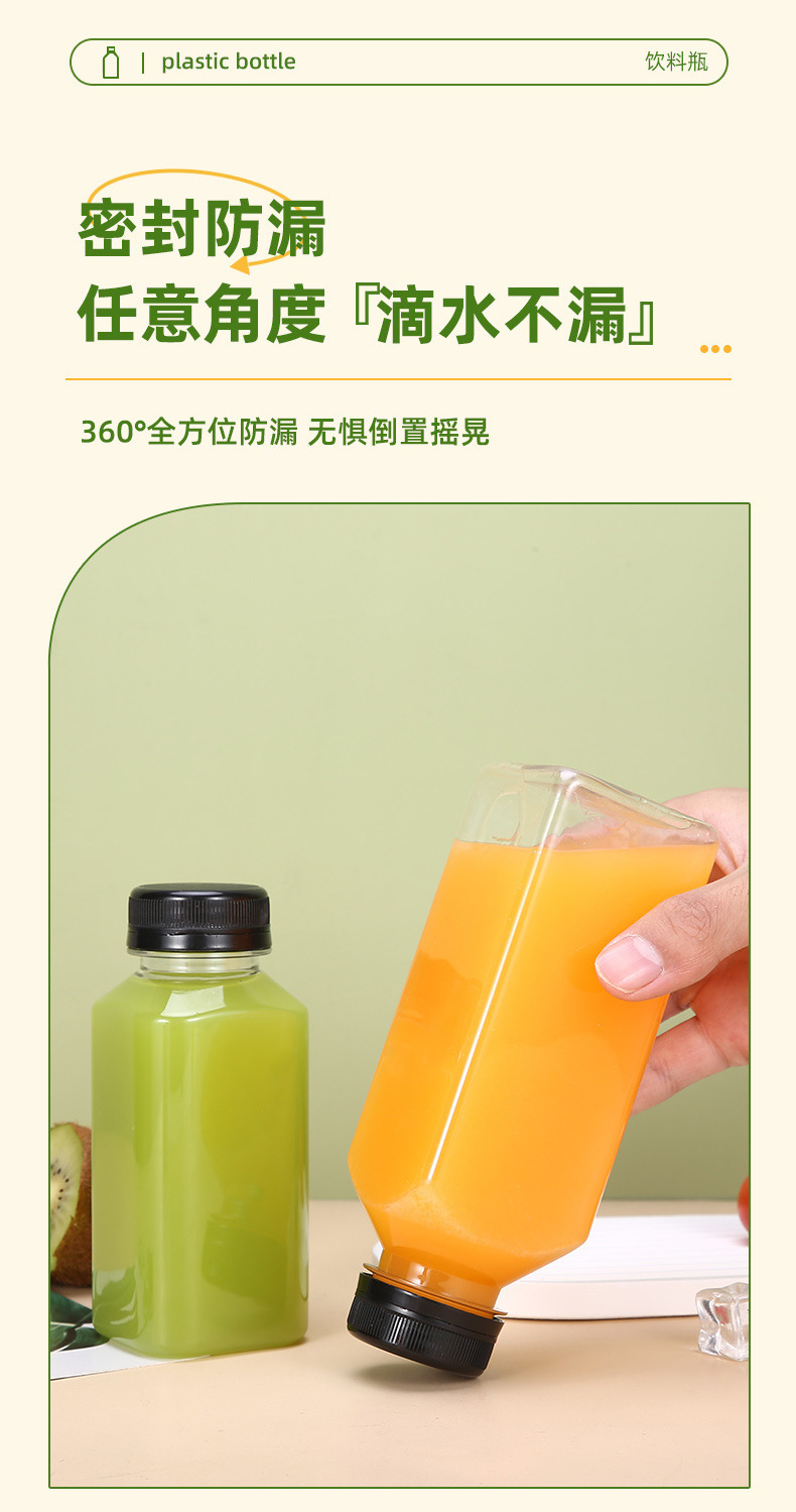Fabricante spot 38 botella de té de leche cuadrada botella de bebida transparente de plástico con tapa botella vacía de jugo de red de grado alimenticio