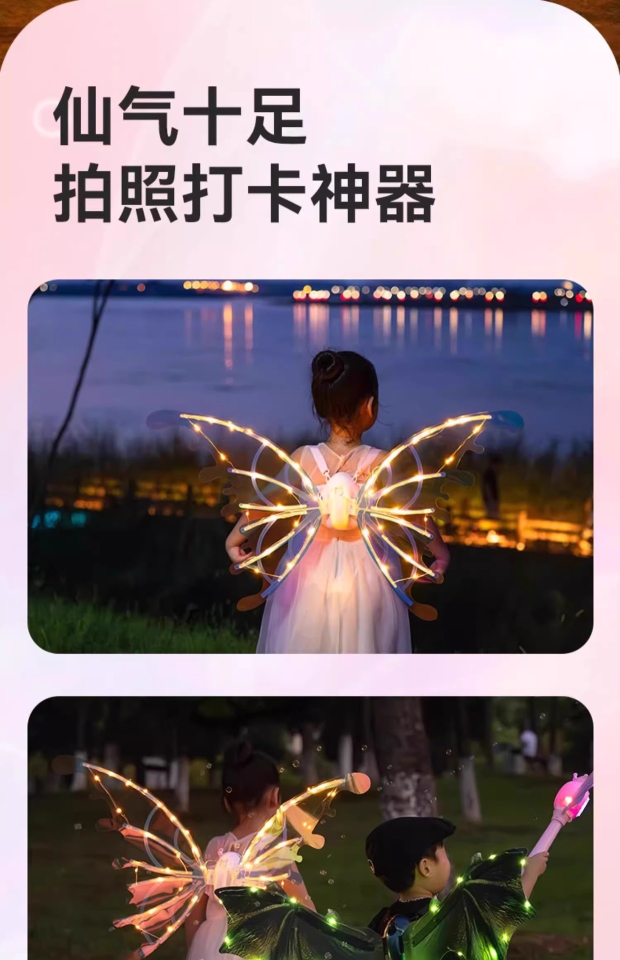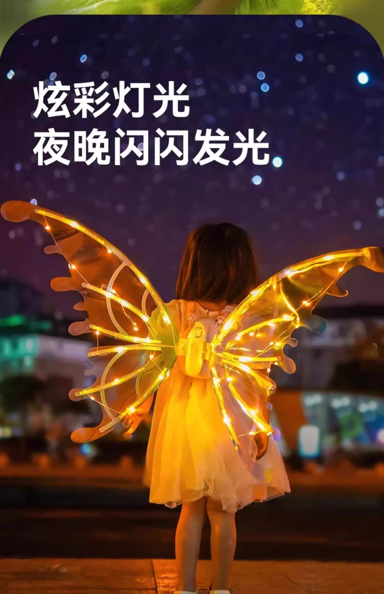 El genio de las alas luminosas eléctricas totalmente automáticas luminosas se moverán mariposa accesorios de espalda con lámpara juguetes para niños y niñas